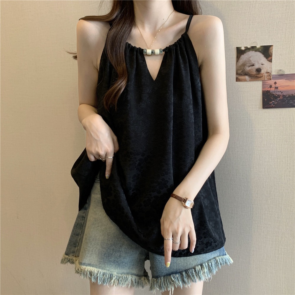 | nameOriginal | plus size Ice Silk Halter Camisole Women's Summer chubby girl Loose Belly Covering Outer Wearing French Sleeveless Top |