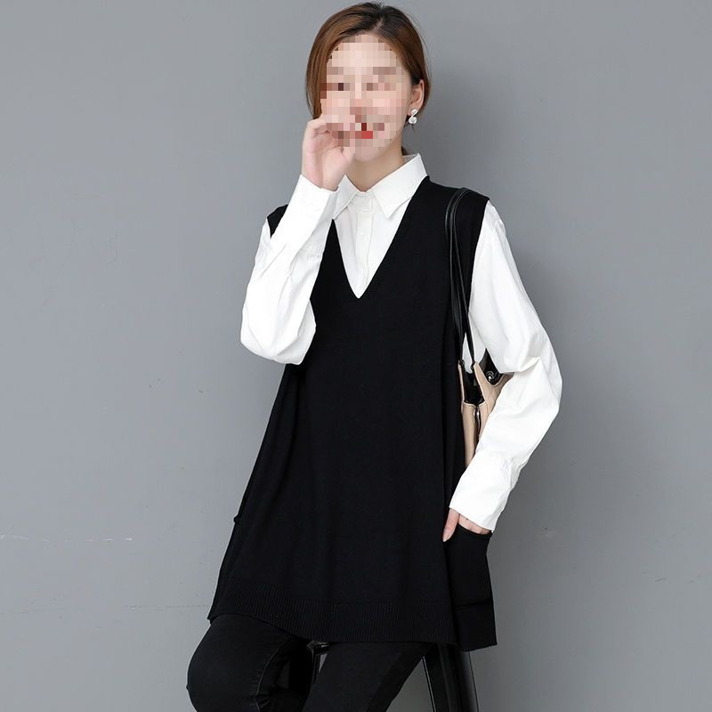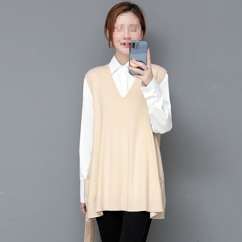 plus size Knitted Women’s Spring and Autumn Outer Wearing Vest Loose Slim Korean-style V-neck Sweater Vest Wool Waistcoat Autumn