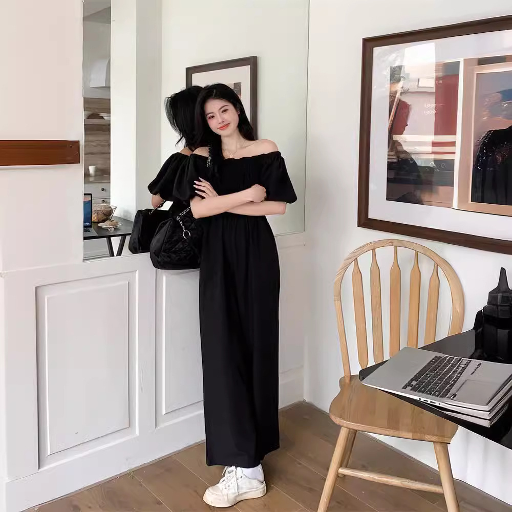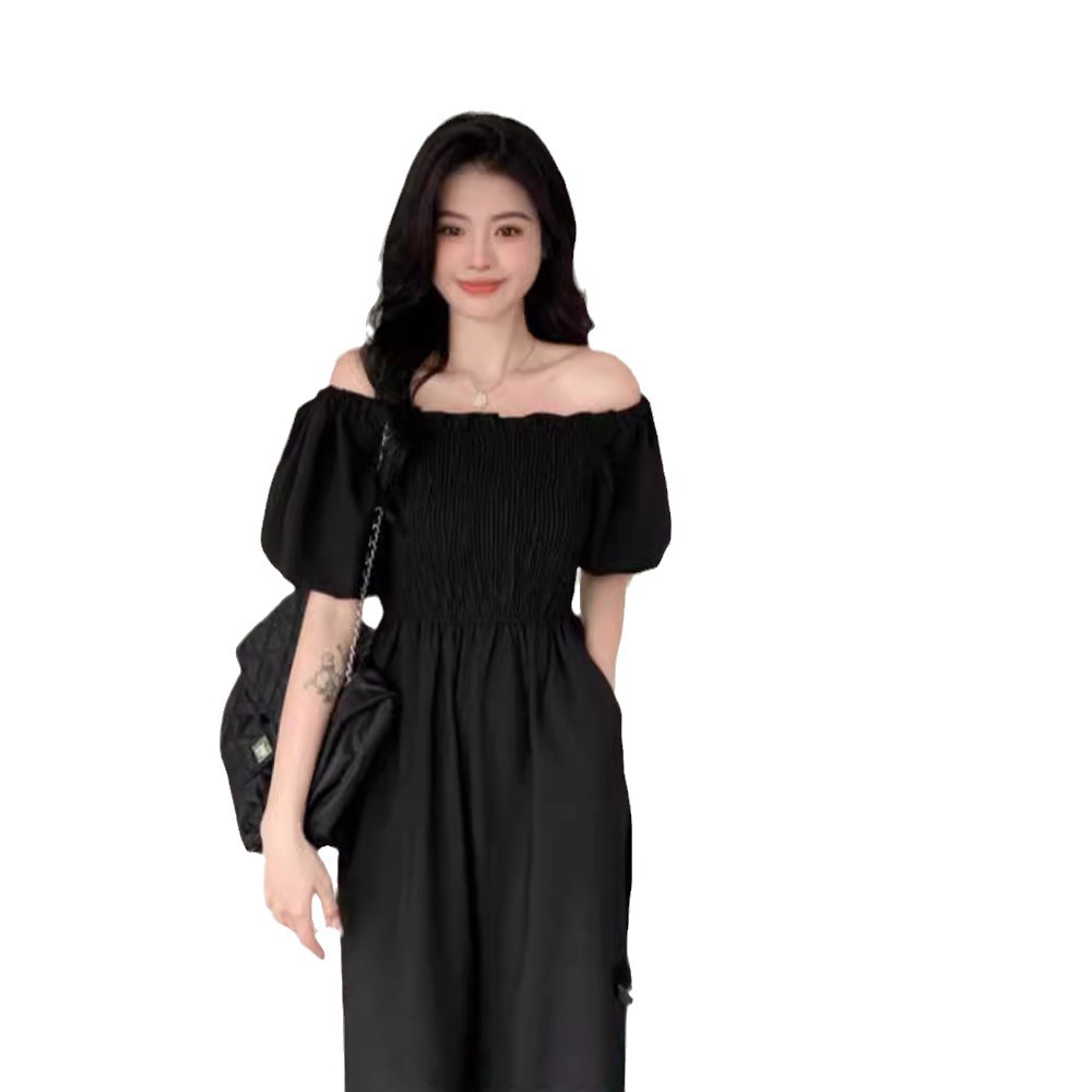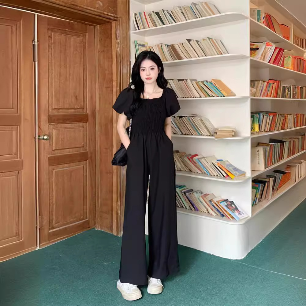 | nameOriginal | Plus size Korean style loose casual jumpsuit women's elegant summer chubby girl waist slimming black wide-leg pants |