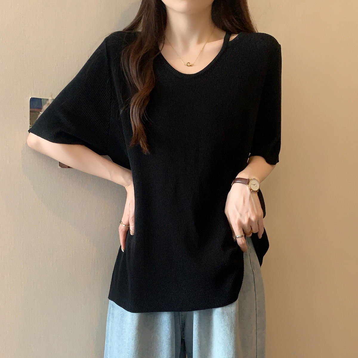 | nameOriginal | plus size Korean Style Thin Casual Knitted Sweater Women's 2024 Summer New Design Shoulder Sense Laid-back Loose Top |
