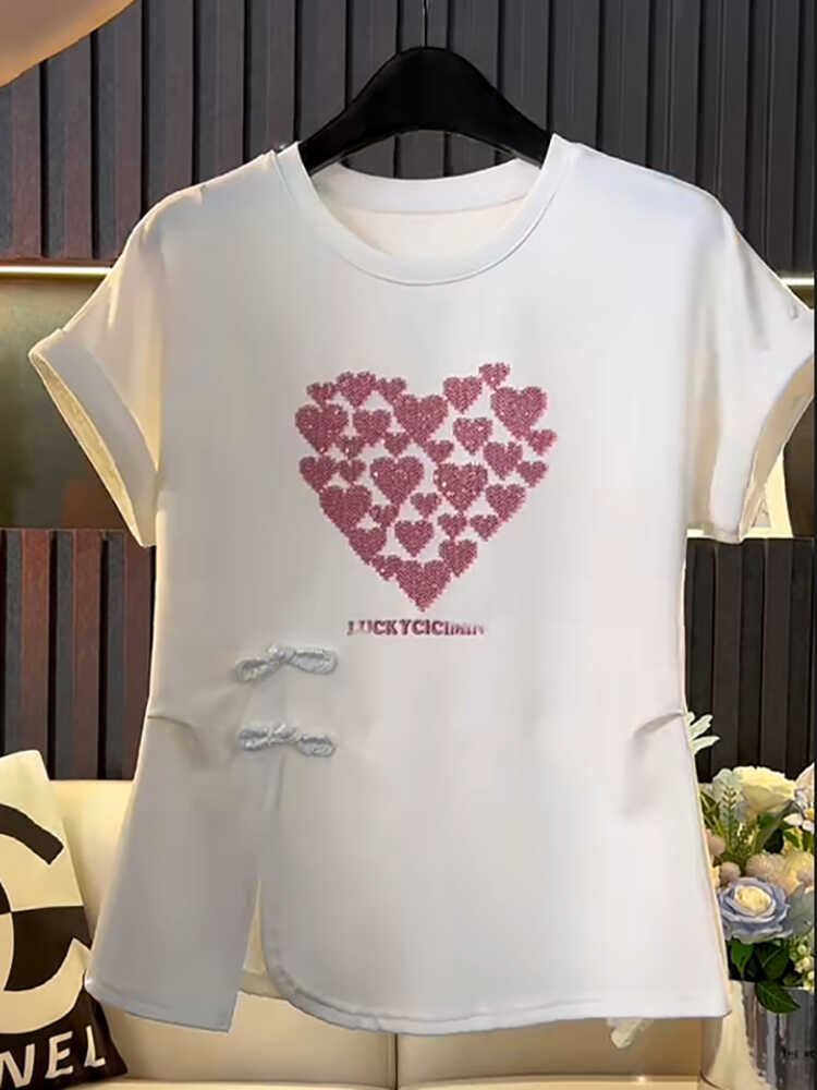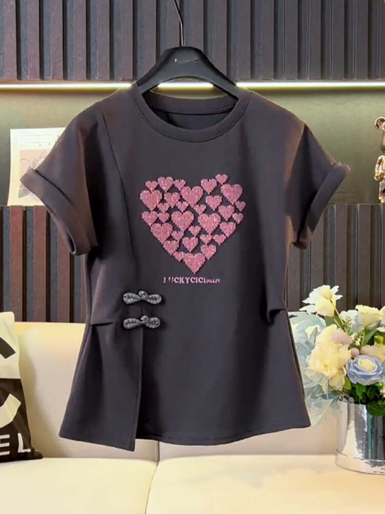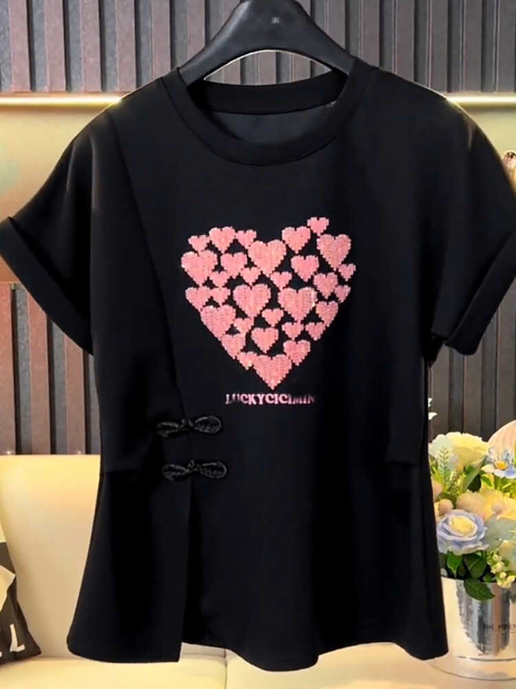 | nameOriginal | plus size Love Hot Drilling New Chinese Short-sleeved T-shirt Women's 2024 Summer New Half-sleeved chubby girl Slimming National Style Top |