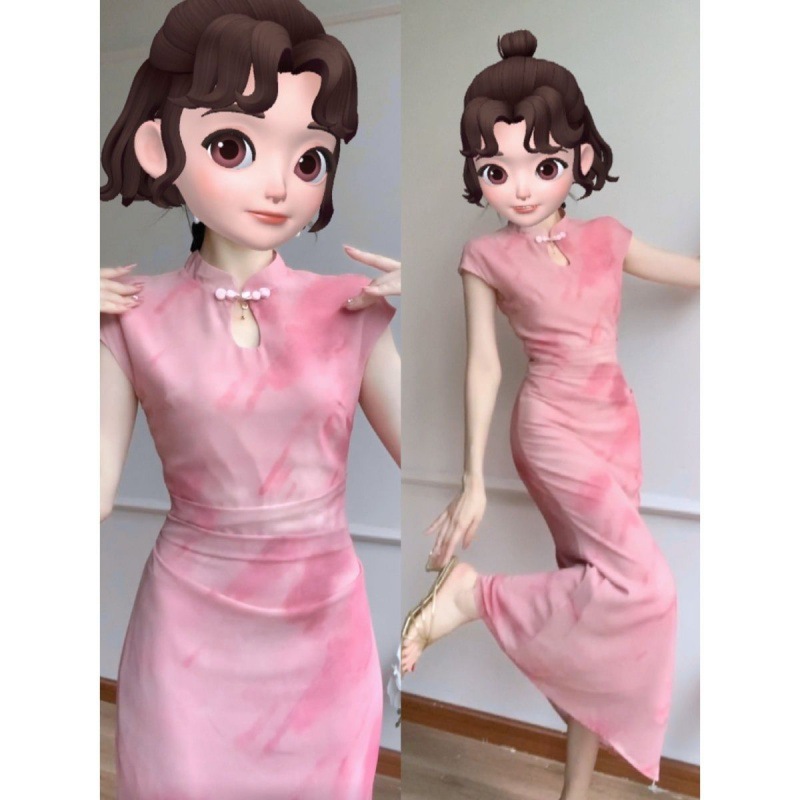 | nameOriginal | plus size New Chinese Style National Style Improved Cheongsam dress Women's Buckle Pink Elegant Slim-fit Hip Fishtail Dress Summer |