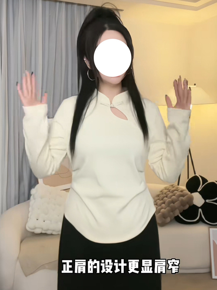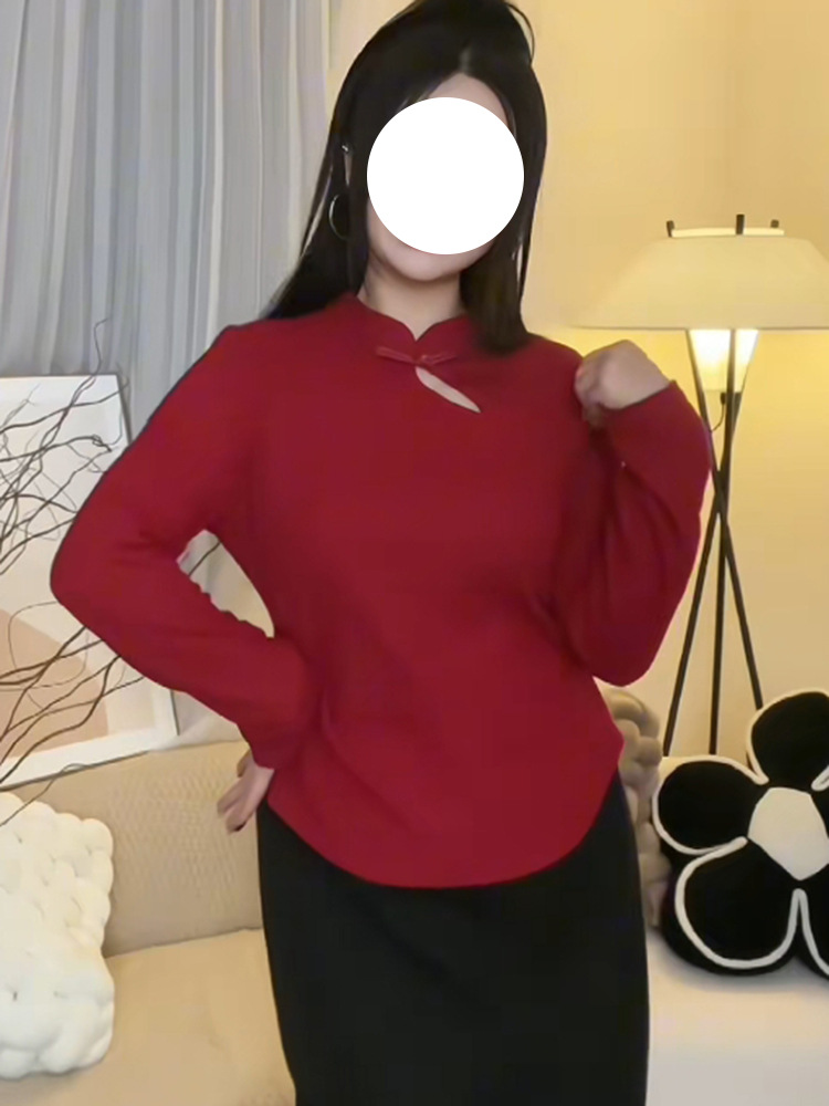 | nameOriginal | plus size New Chinese Style Retro Buckle Collar Base Shirt Women's Early Spring Wear chubby girl Slim Inner Long Sleeve Top |