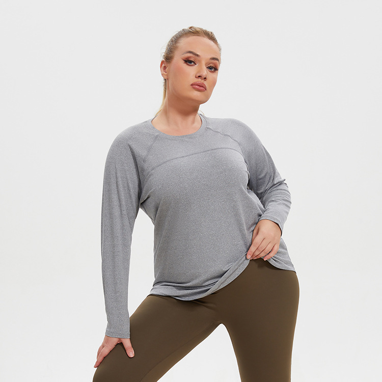 | nameOriginal | plus size new mesh stitching moisture wicking T-shirt curved hem sports fitness top yoga clothing long sleeve women |