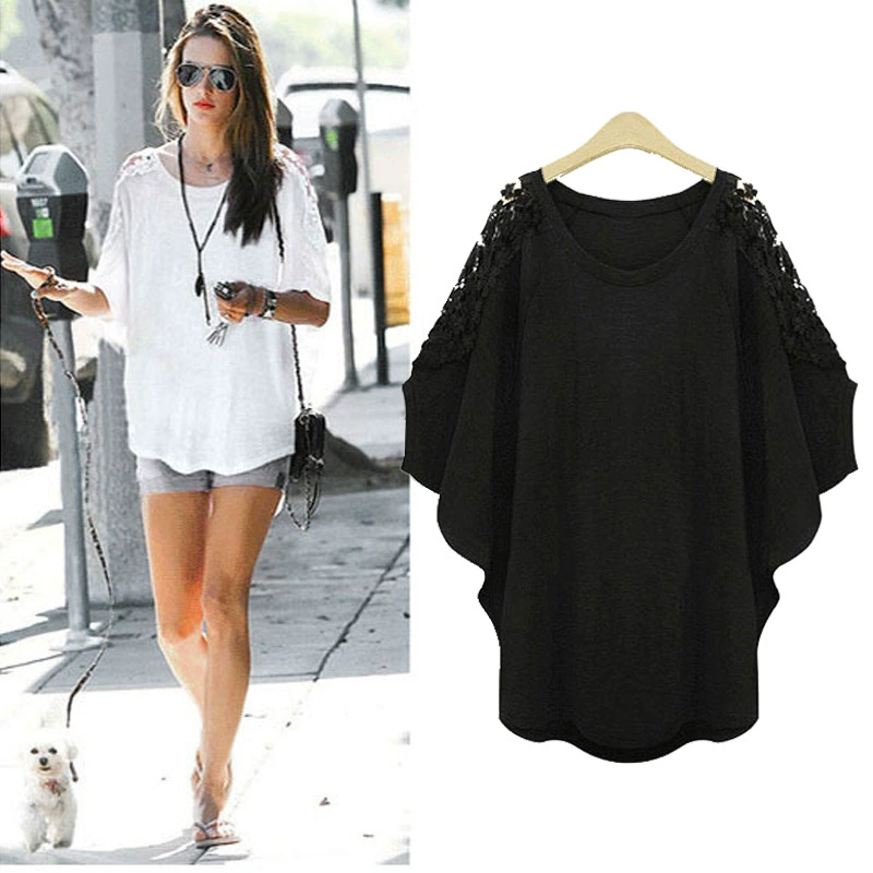 Plus size plus size lace top for women short sleeve summer fat sister hook pattern hollow loose bat t-shirt 200 pounds