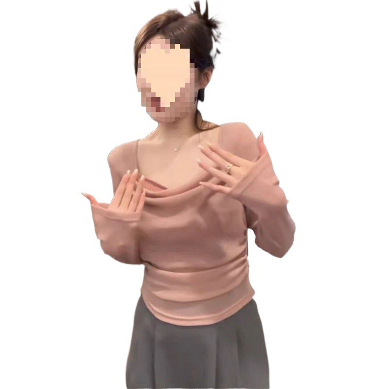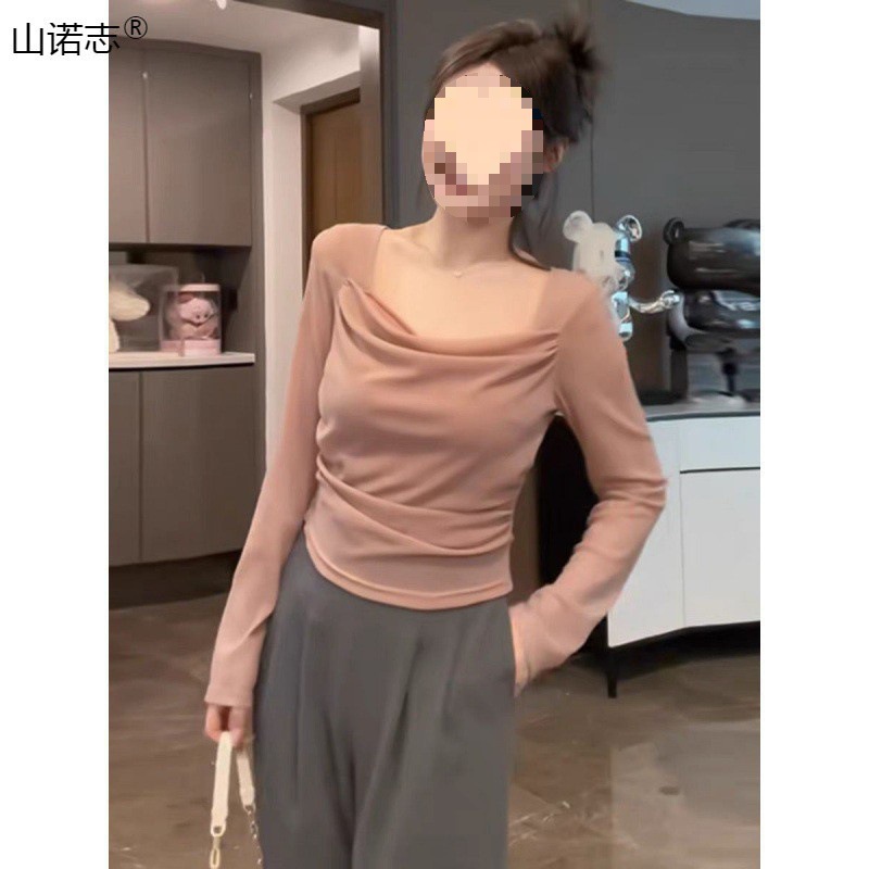 plus size Pure Sweet Hot Girl Short Square Collar Top for Spring and Summer Slight Chubby Slim Base Shirt Women's Inner Long Sleeve T-Shirt for Hair