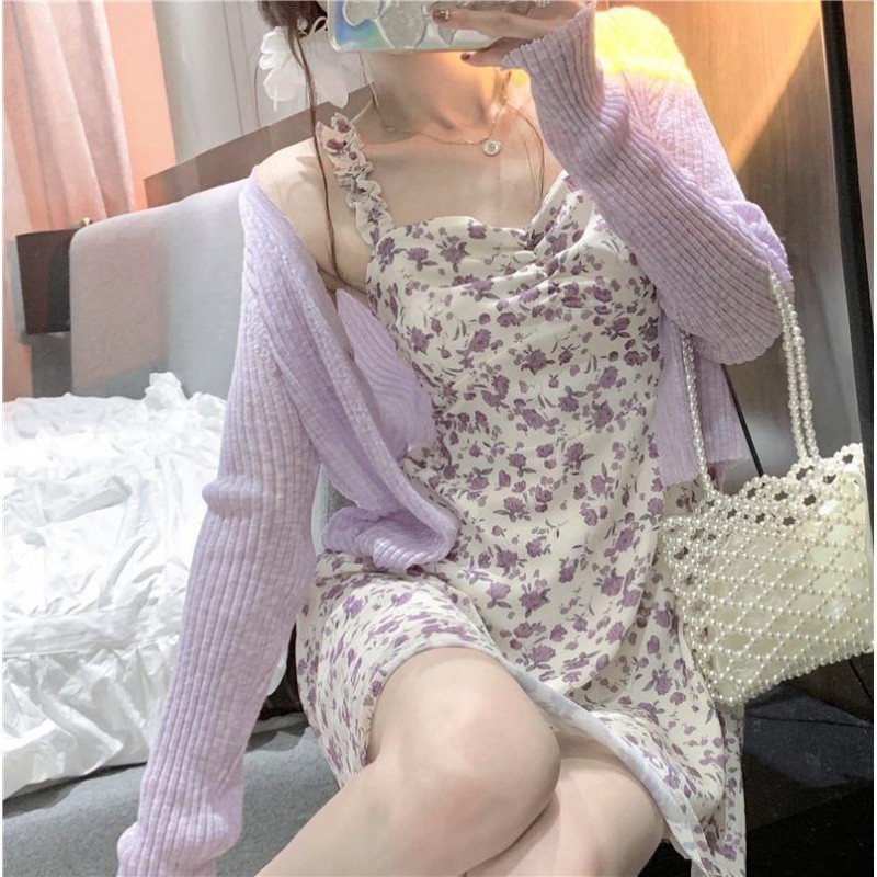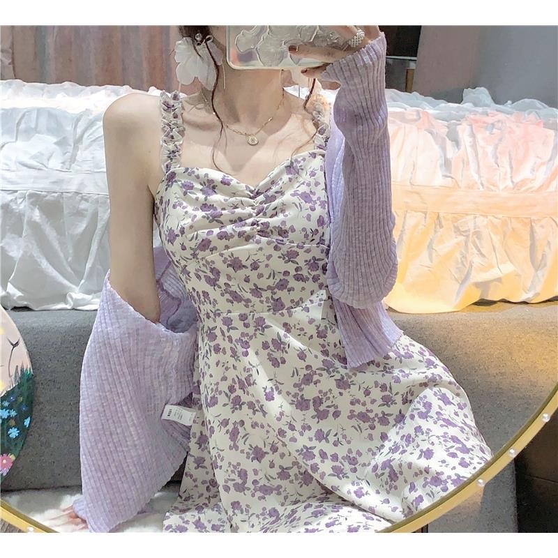 | nameOriginal | plus size Purple dress Chubby Slip Dress suit Women's Summer French Style Gentle Style First Love Floral Dress New in Style |