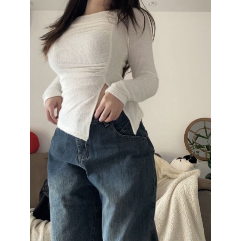 Plus size retro dark blue washed jeans women’s high waist loose straight slimming wide leg mop long pants chubby girl