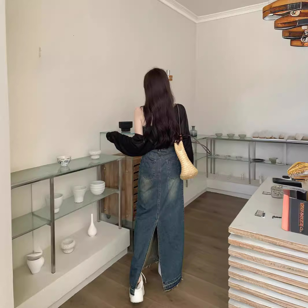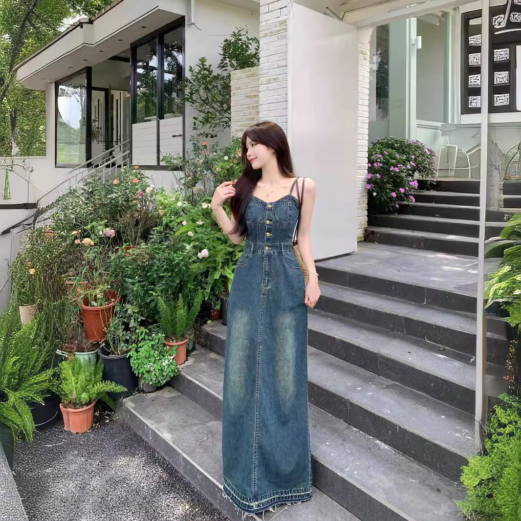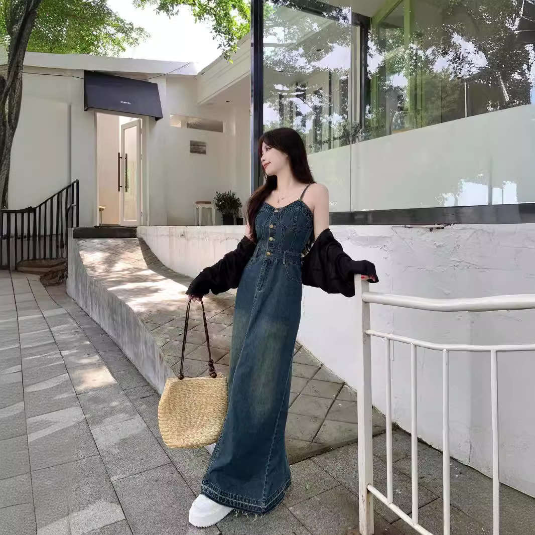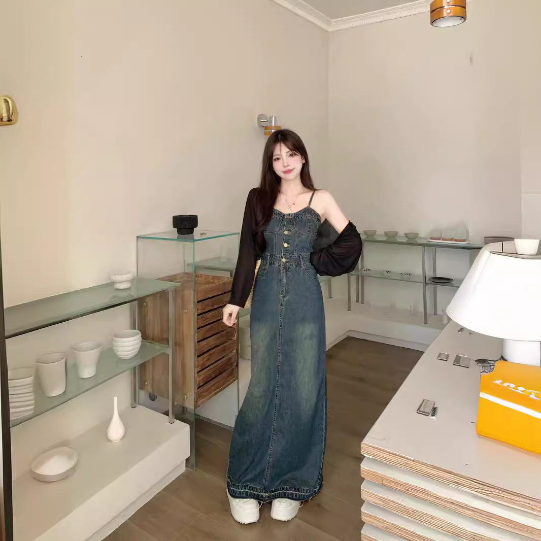 | nameOriginal | plus size Retro Denim Skirt suit Women 2024 Summer New Korean Style Shawl Retro Sling dress Two-piece Set |
