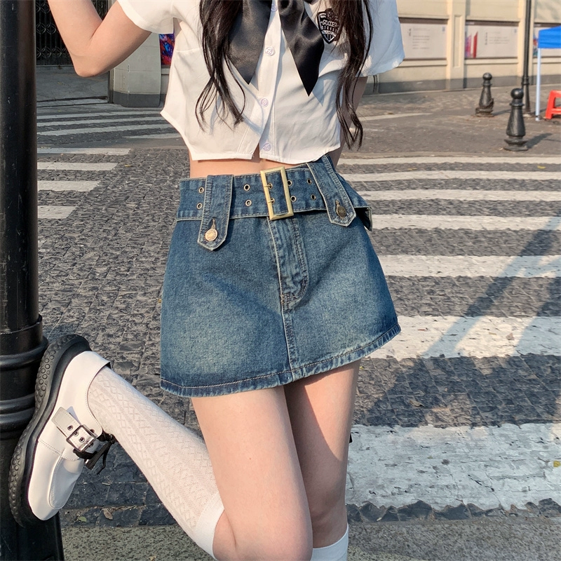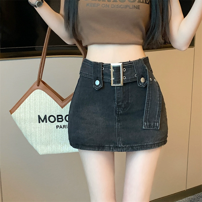 Plus size retro hottie fat mm hip-hugging denim short skirt
