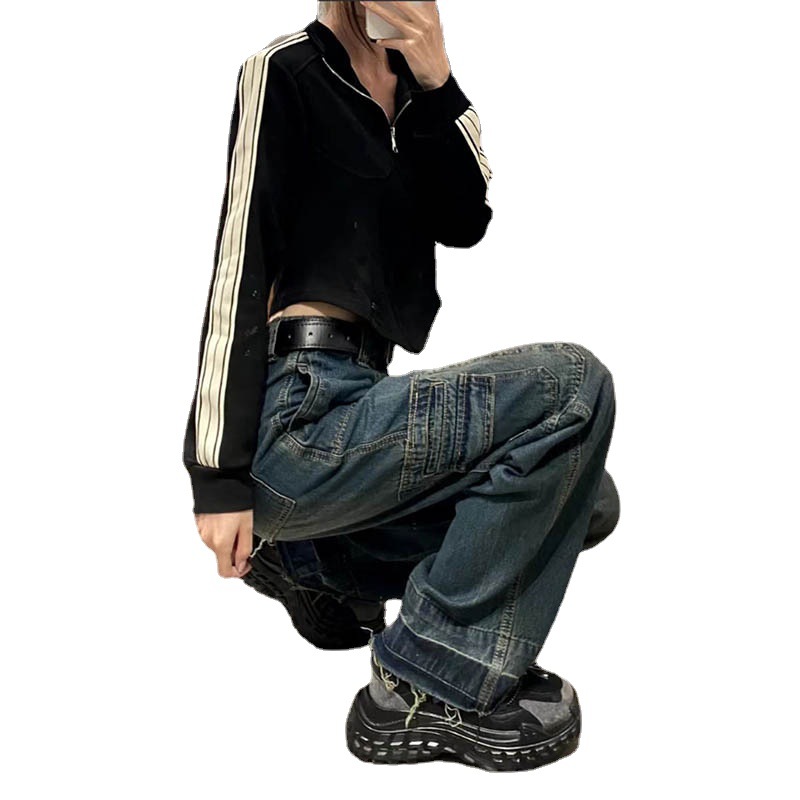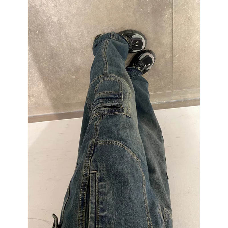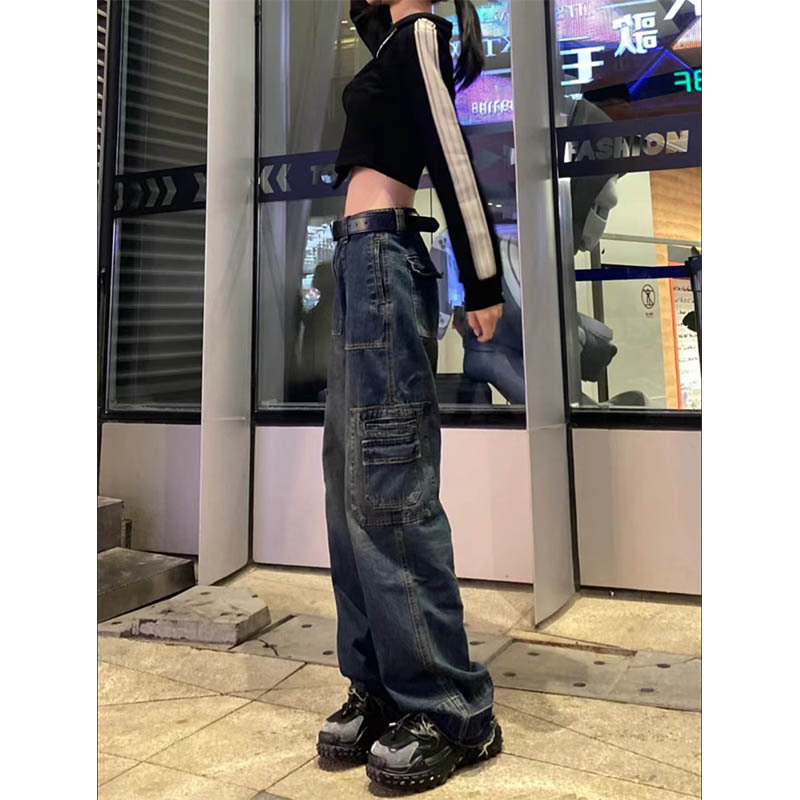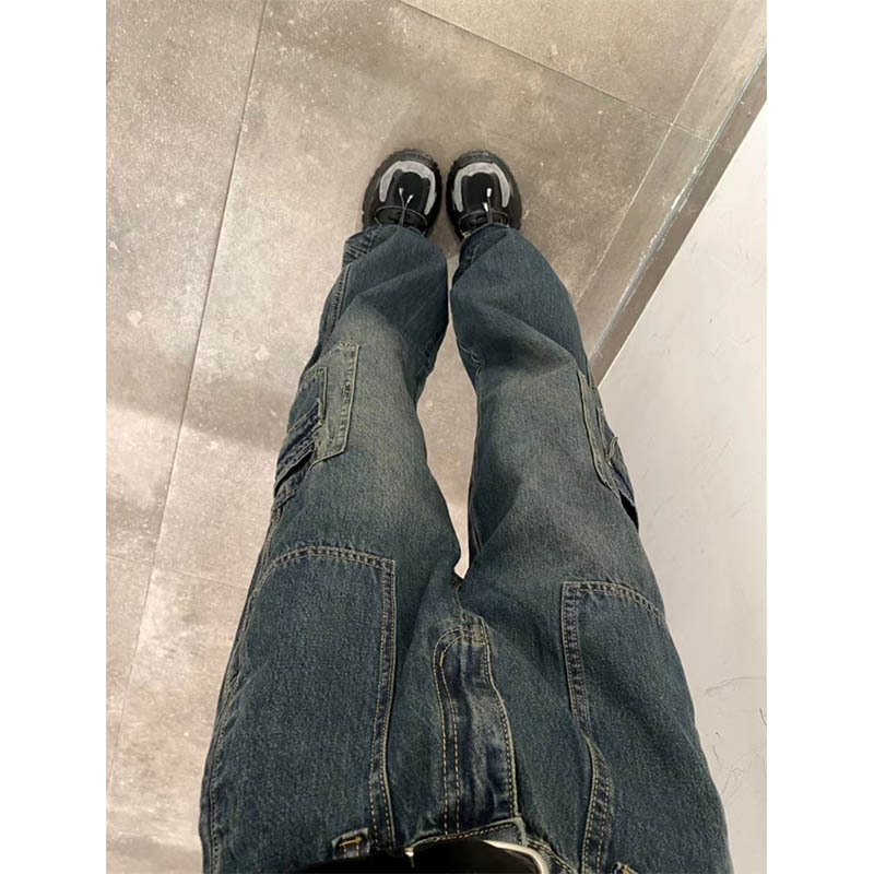 | nameOriginal | Plus size retro pocket jeans for women chubby girl spring design loose straight slimming wide leg overalls fashionable pants |