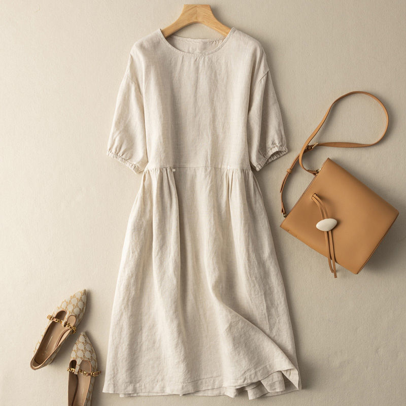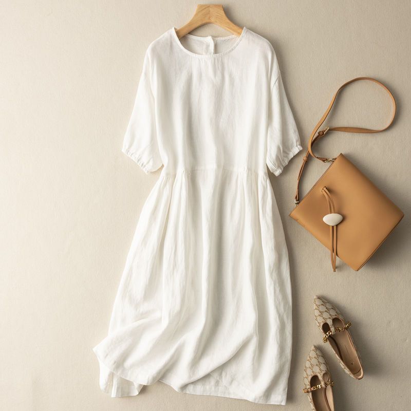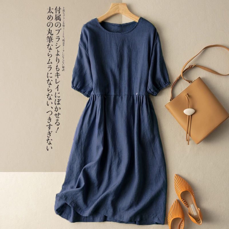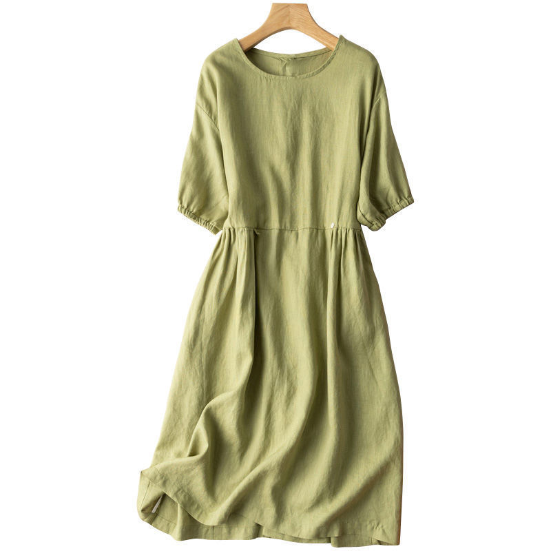 | nameOriginal | Plus size skirt short sleeve dress elegant loose artistic retro mid-length cotton and linen new skirt |