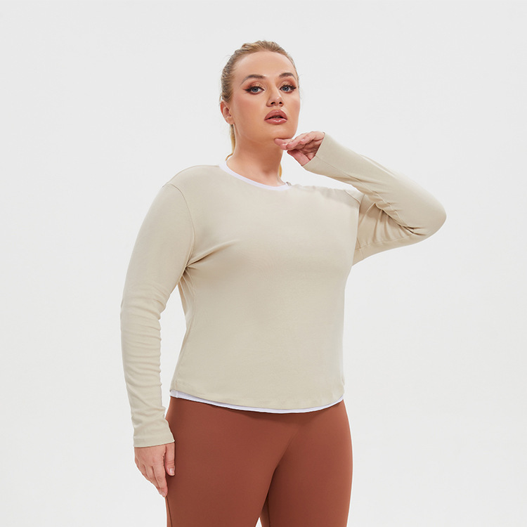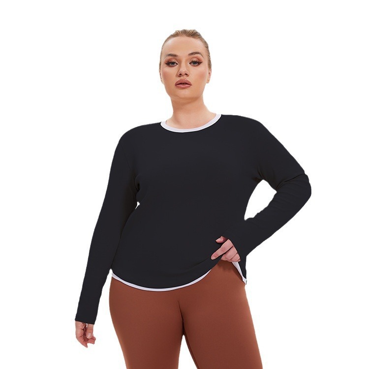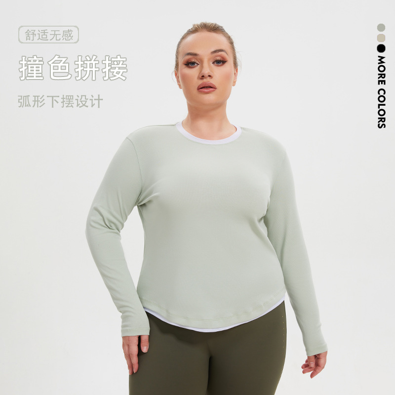 | nameOriginal | plus size Sports Fake Two-piece Color Matching Long-sleeved Top Women's Round Neck Loose Fitness Clothes Internet Celebrity Quick-drying Yoga T-shirt |