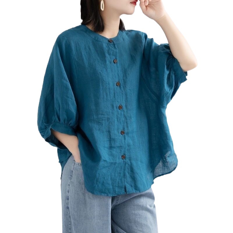 | nameOriginal | plus size Spring and Summer Cotton Shirt Women's Loose Round Neck Shirt Coat Casual Coat Neck Sleeve Top for Women |