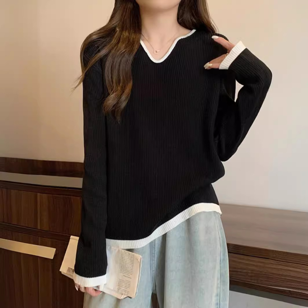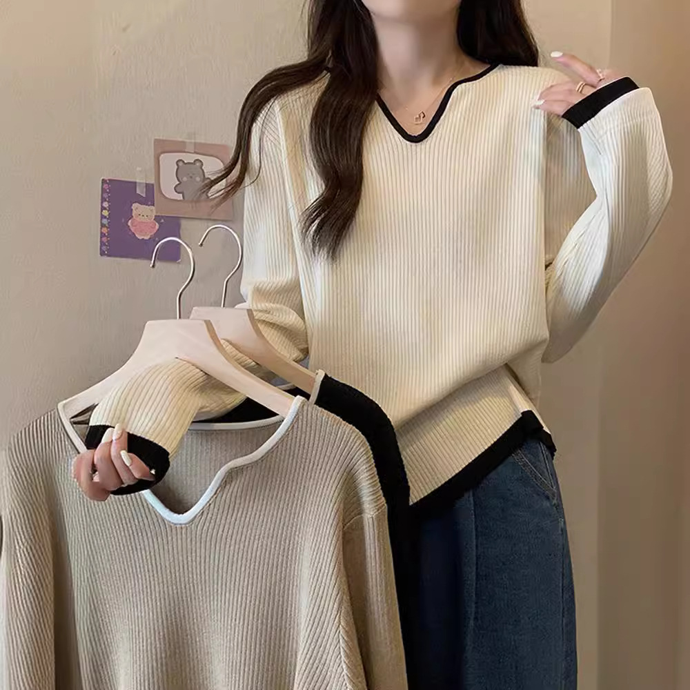 | nameOriginal | Plus size spring new western style slimming solid color sweater chubby girl loose age-reducing stitching bottoming shirt long sleeve top |