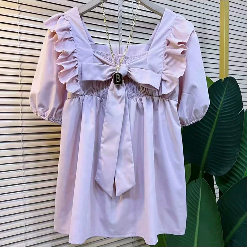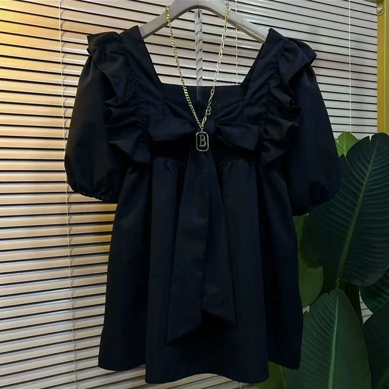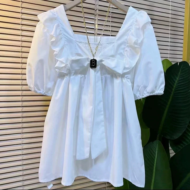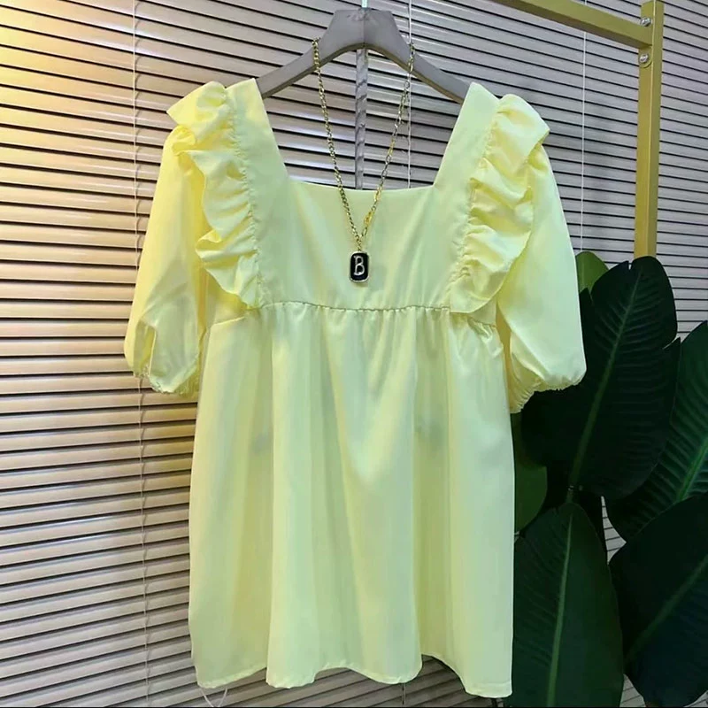 | nameOriginal | Plus size square neck elastic cuffs sweet age-reducing shirt |