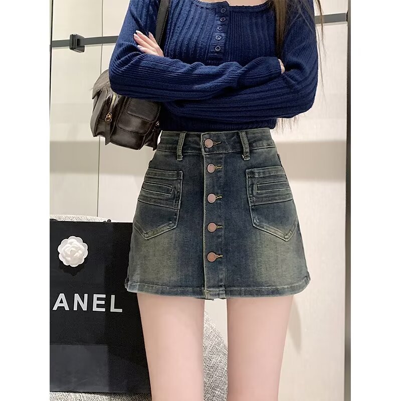 plus size Stretch Denim Skirt Women’s Summer Design Anti-glare High Waist Slimming Hip A- line Skirt Pants