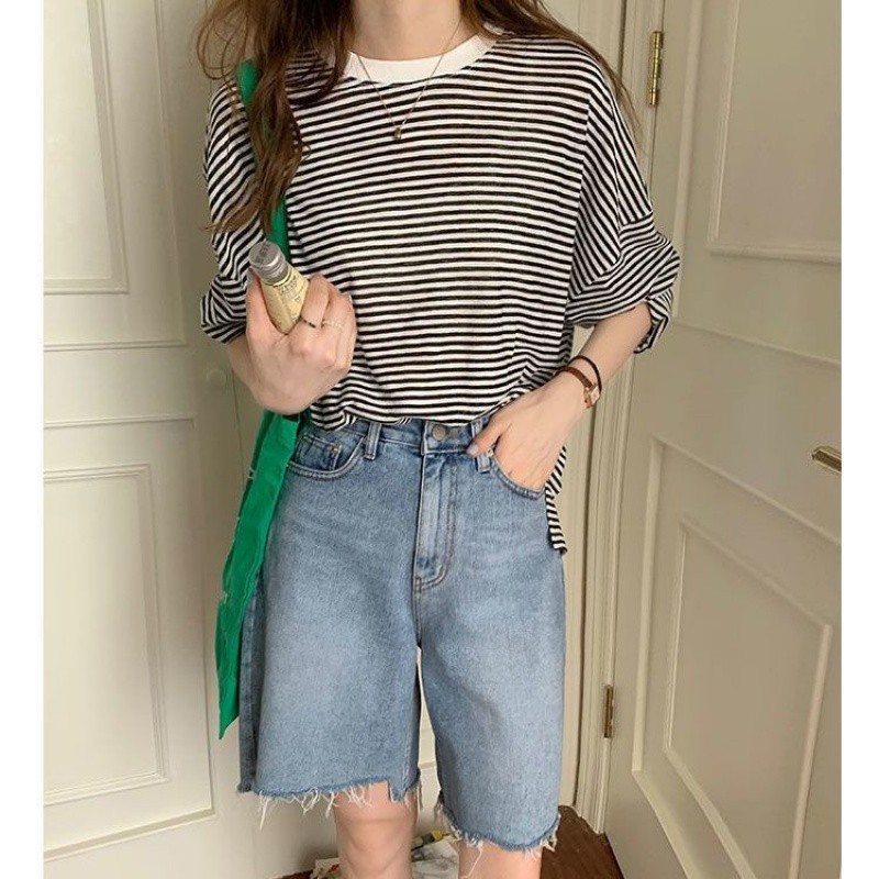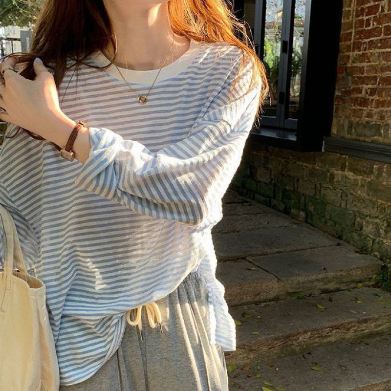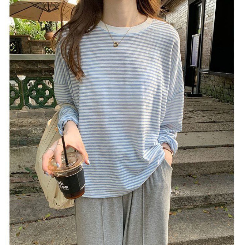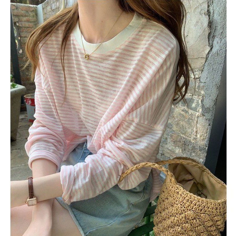 | nameOriginal | plus size Striped Long-Sleeved T-Shirt Women's Summer Thin Ice Silk Loose Design Sense Niche Chic Sunscreen Blouse Trendy Top |