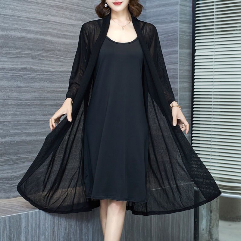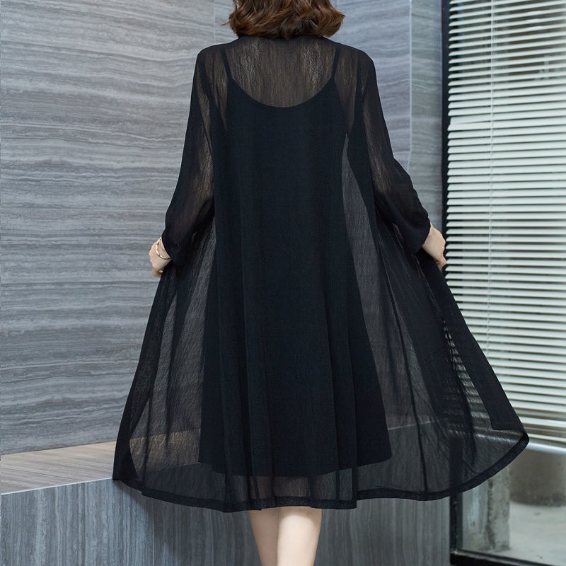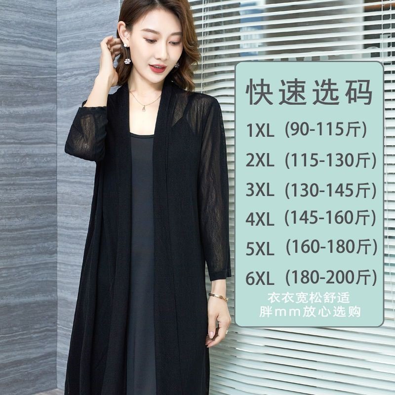 plus size Sun Protection Clothing Women's Summer New Middle-aged Mother Breathable Shawl Thin Mid-length Cardigan Black Outer Cape