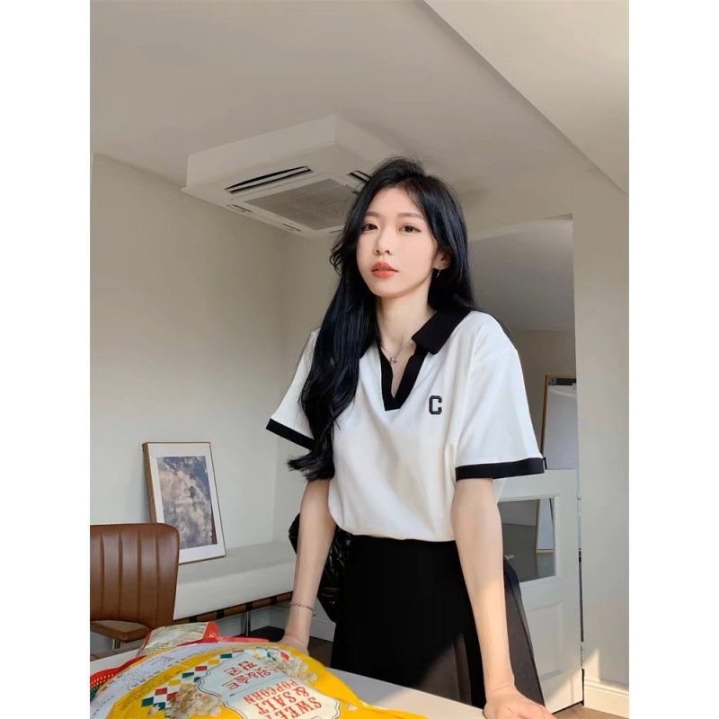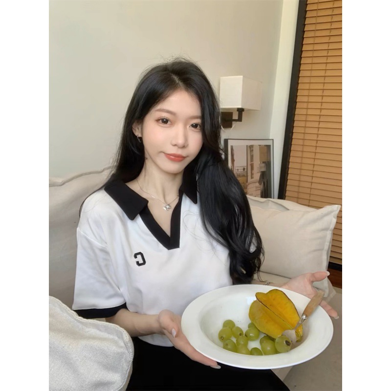 plus size Sweet and Spicy Polo Neck Printed T-shirt 2024 Summer chubby girl Flesh Covering Slimming American Retro Short Sleeve Top