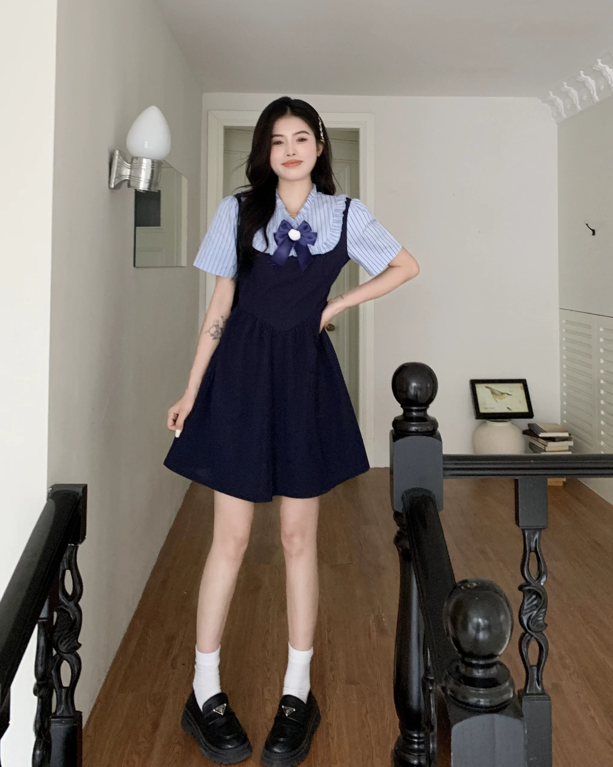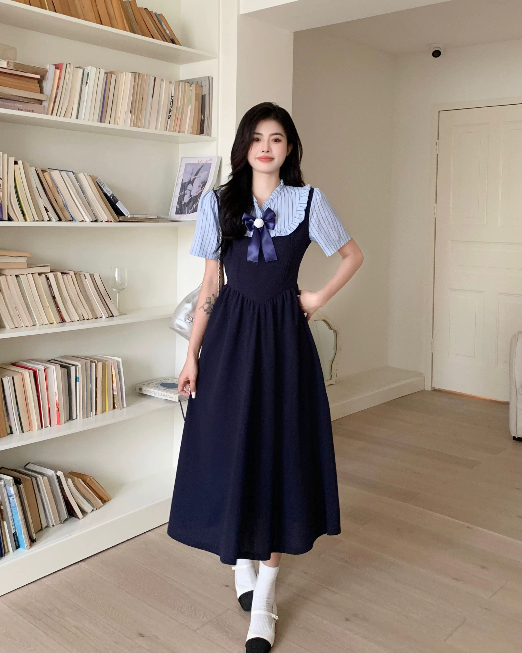 | nameOriginal | Plus size temperament belly-covering age-reducing college style dress for women summer holiday two-piece skirt slightly fat mm slimming long skirt |