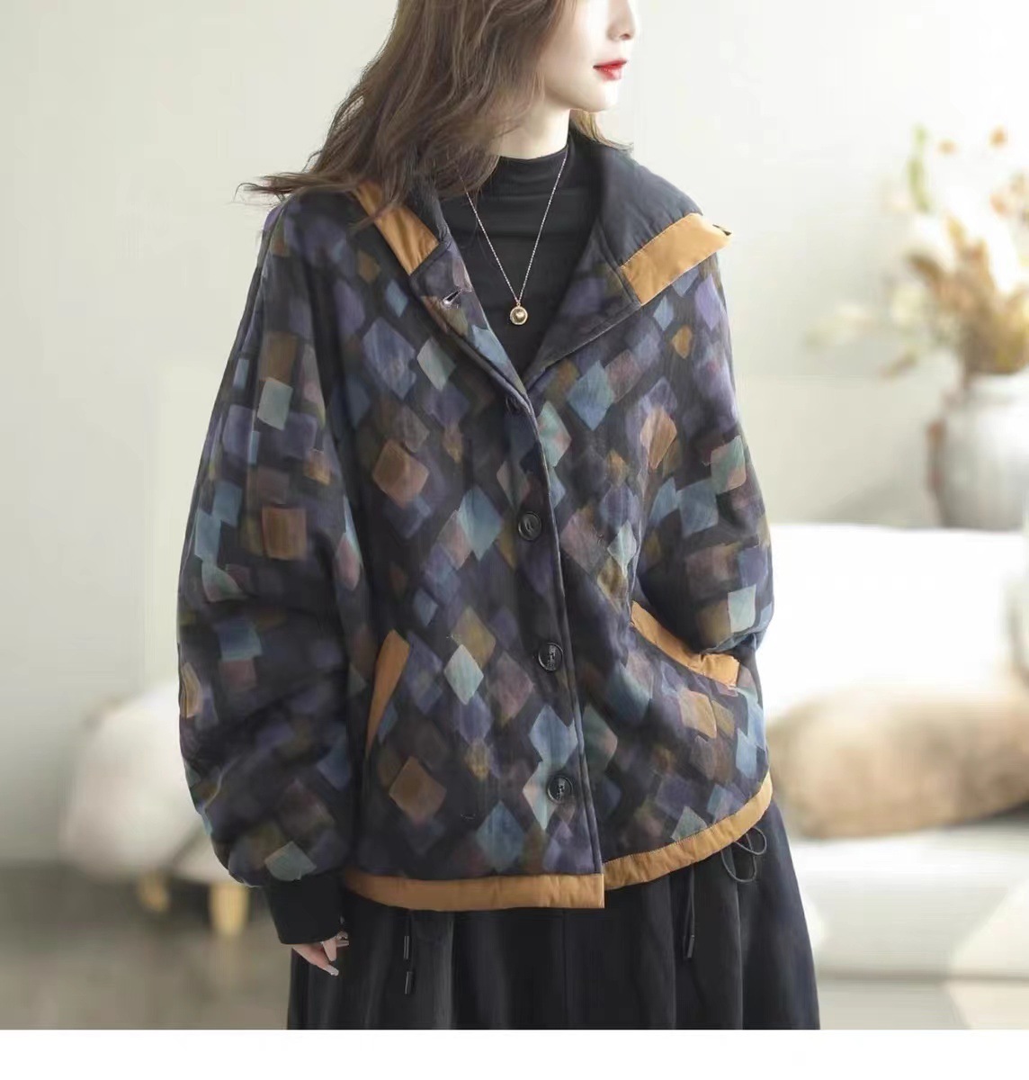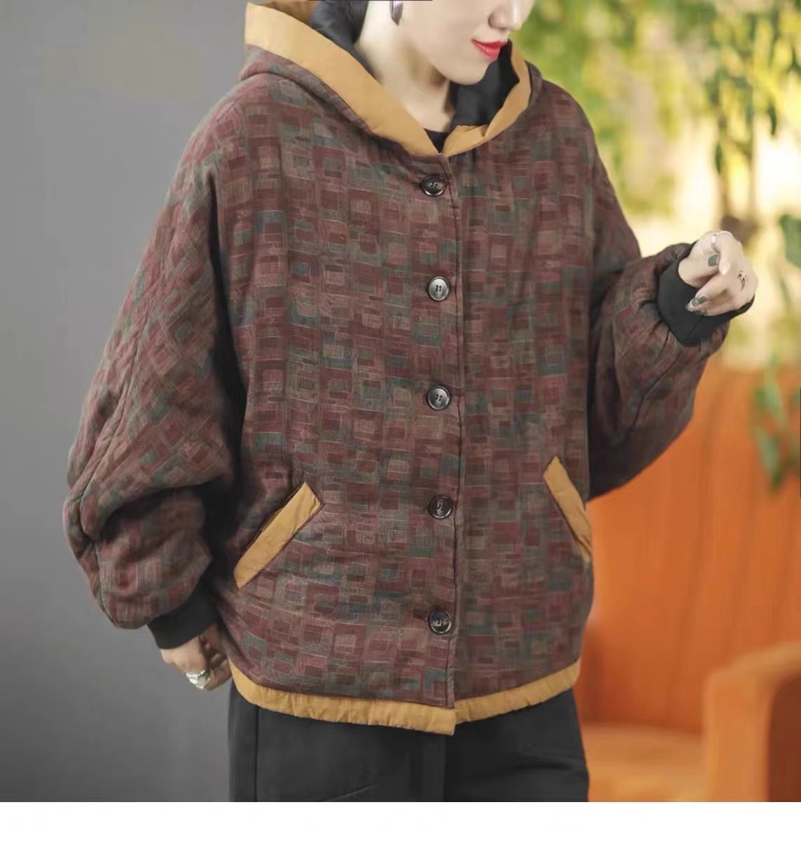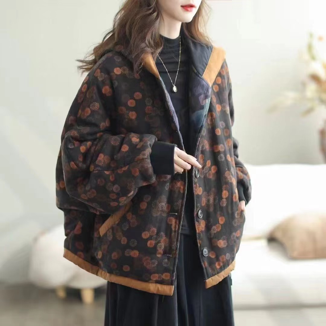 | nameOriginal | Plus size vintage printed cotton and linen hooded short cotton-padded coat women's winter loose chubby girl slimming soft quilted coat cotton-padded coat |