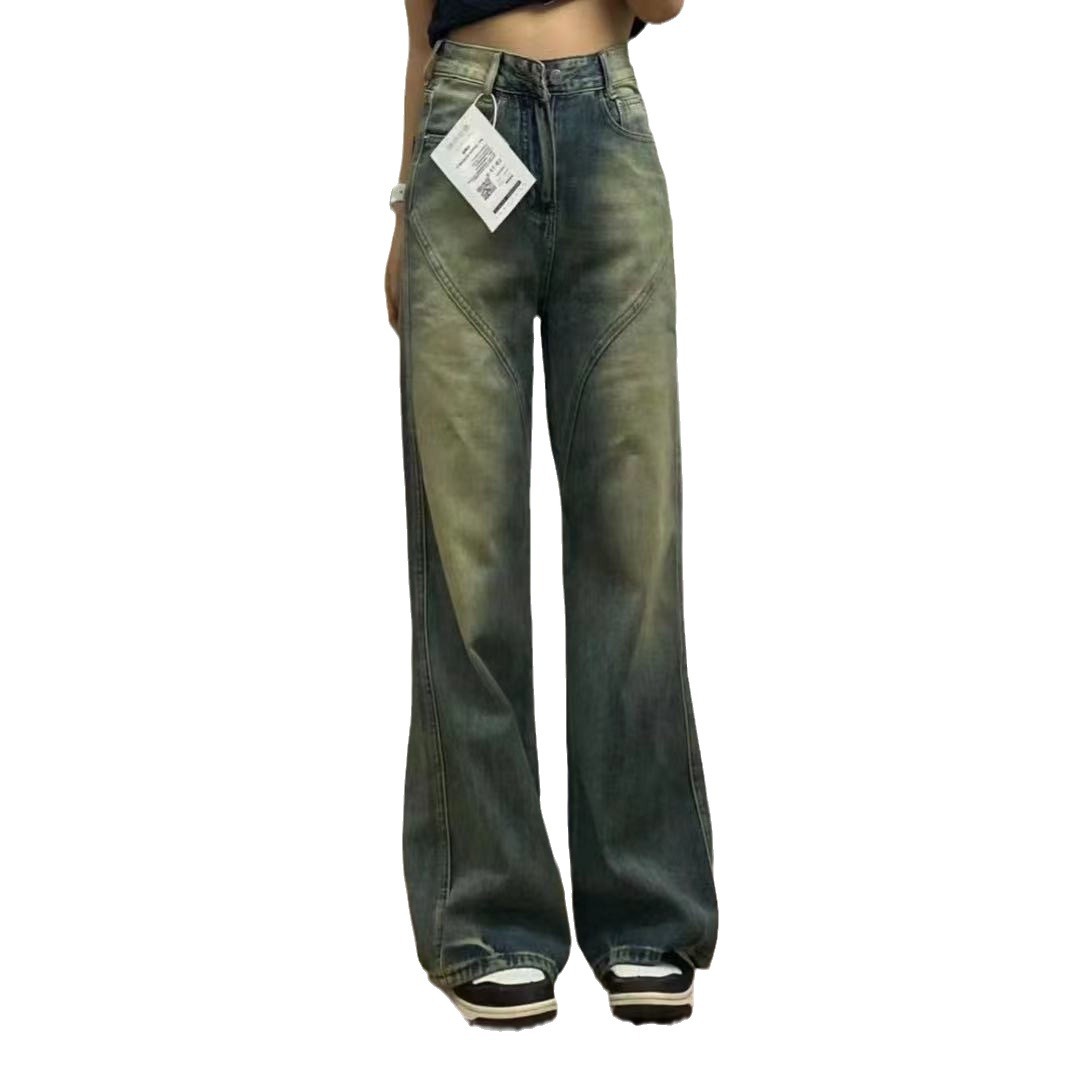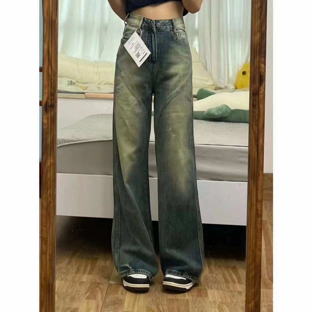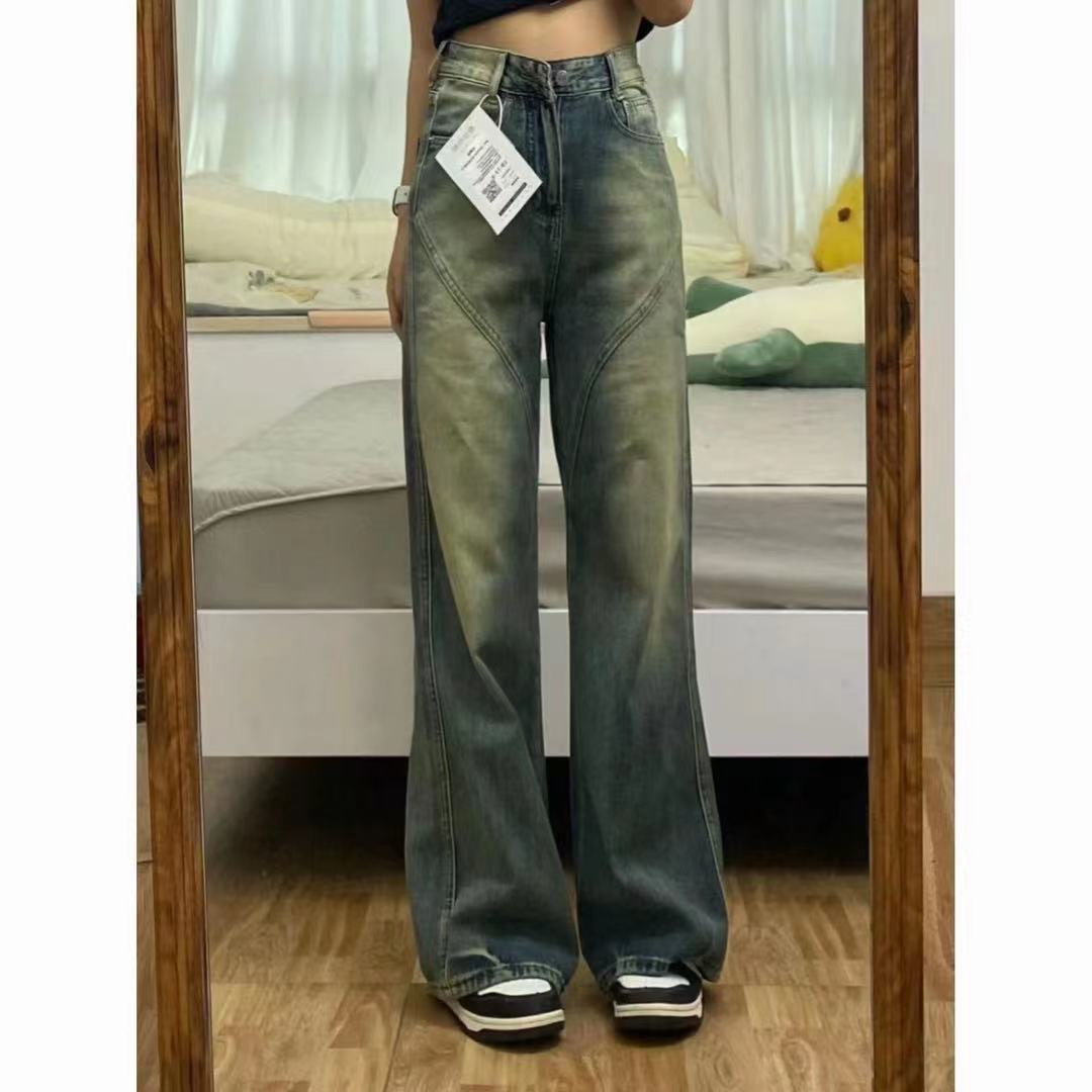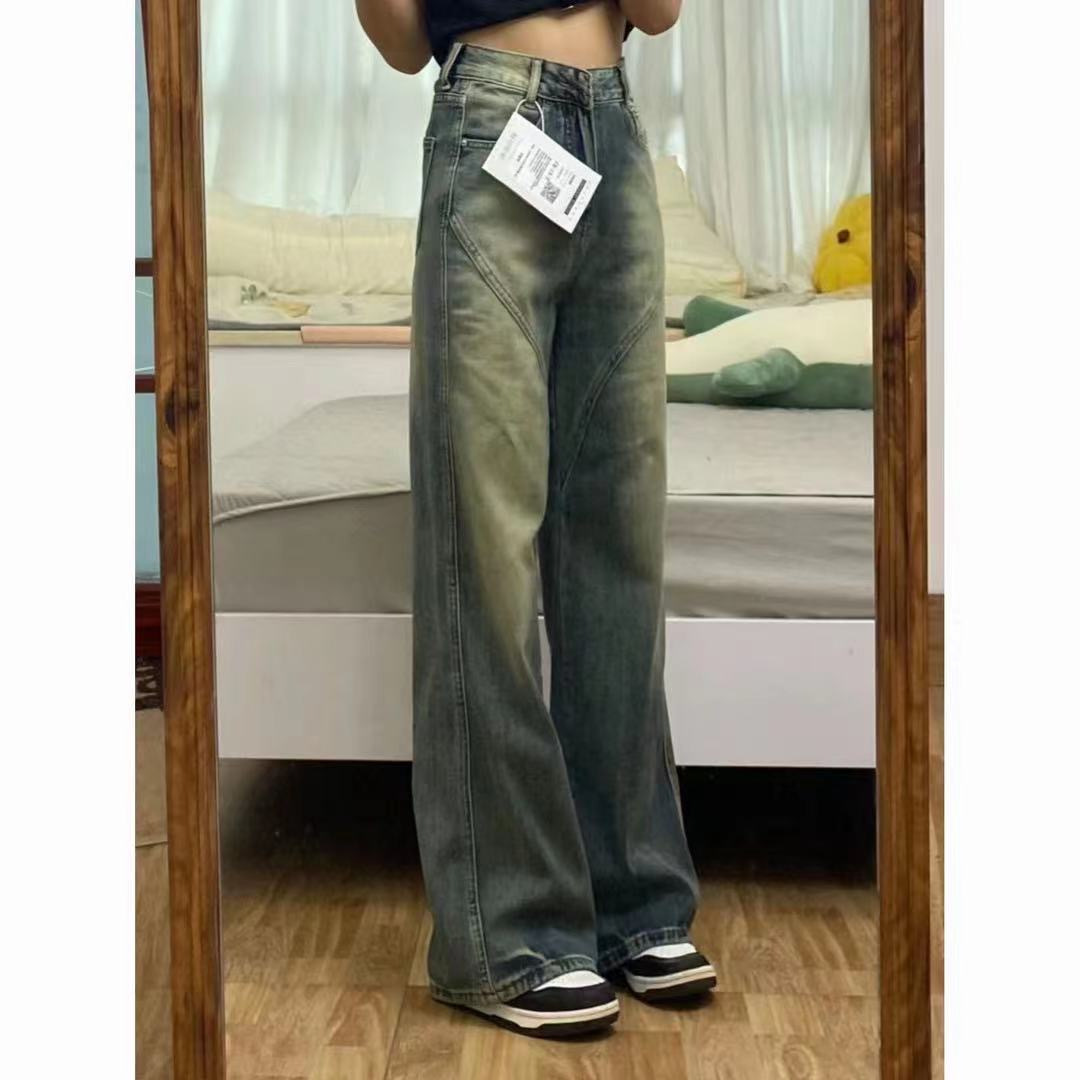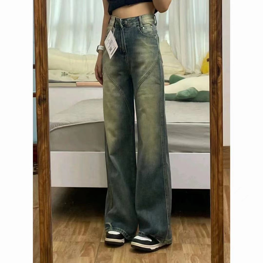 | nameOriginal | plus size Vintage Washed Relaxed Loose Straight Jeans Women's All-match High Waist Slimming Tape Wide Leg Trendy |