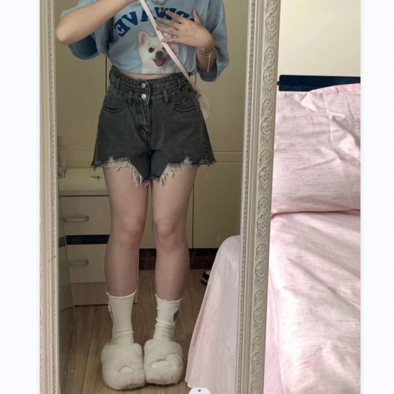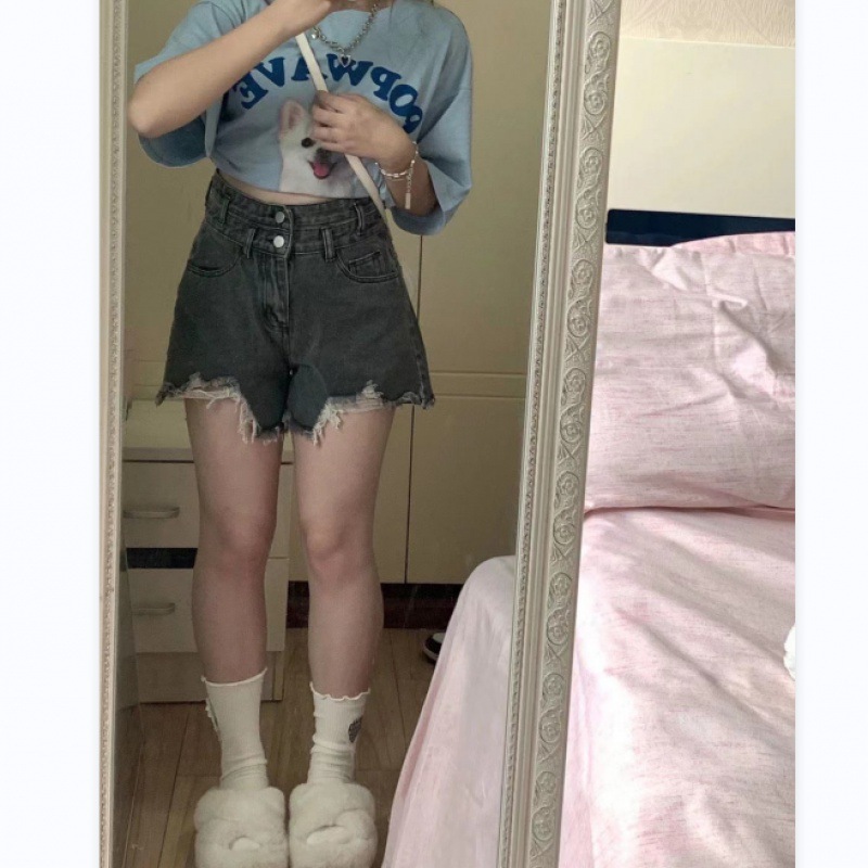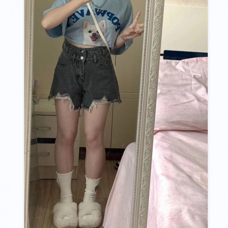 | nameOriginal | plus size Washed Vintage Denim Hole Shorts Women's chubby girl All-match Slim Look High Waist Casual Straight Loose Wide-leg Pants |