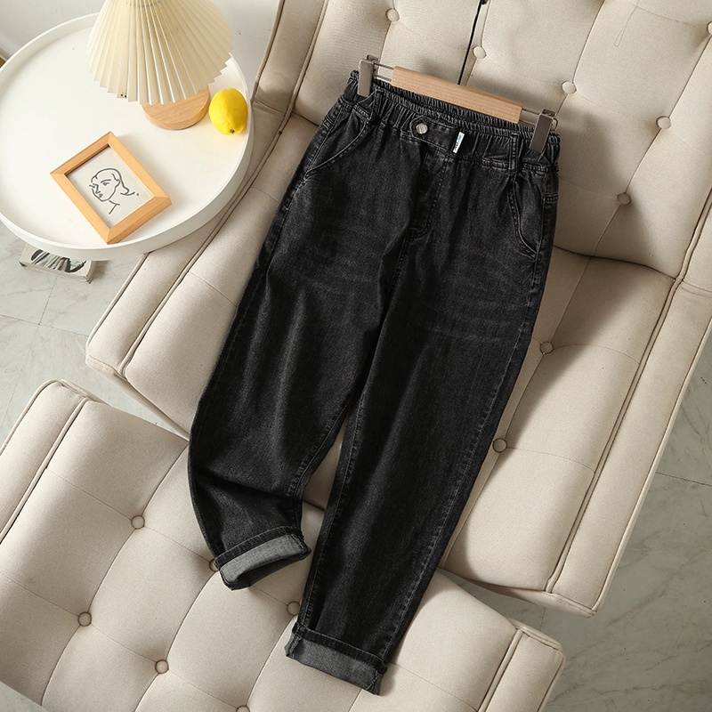Plus size women's 2023 autumn Korean style new fashion harem pants fat mm elastic waist thin denim cropped pants