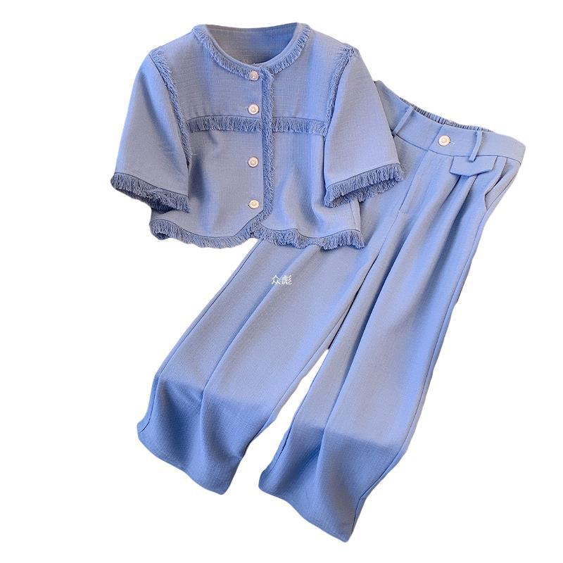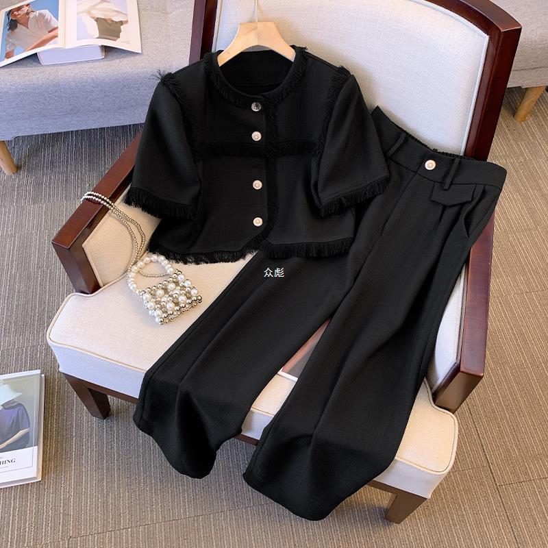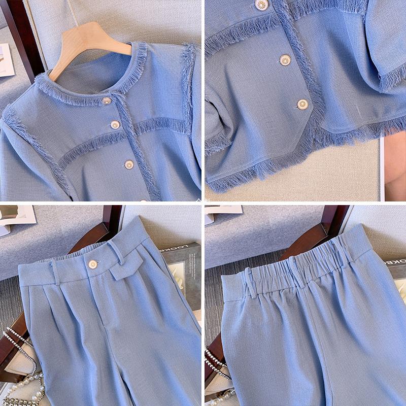 | nameOriginal | plus size women's 2023 fat sister summer new fashion suit small suit tassel coat casual pants two-piece set |