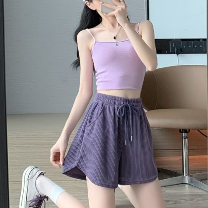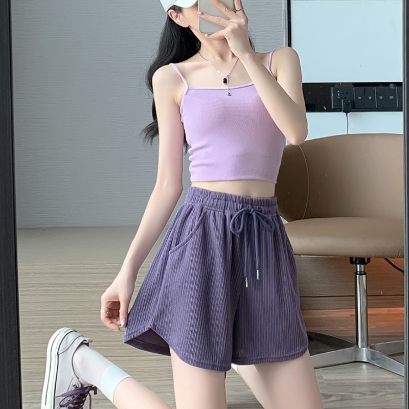 plus size Women’s 2024 Summer High Waist Slimming Ice Silk Shorts Slight Fat Girls Small A- shaped Outer Wear Wide-leg Hot Pants