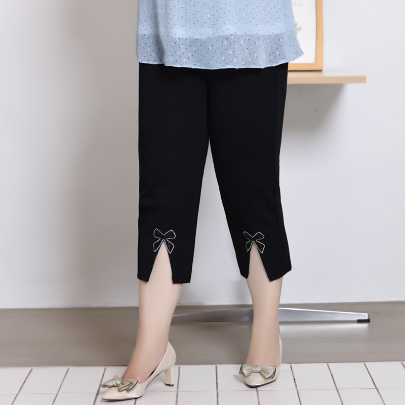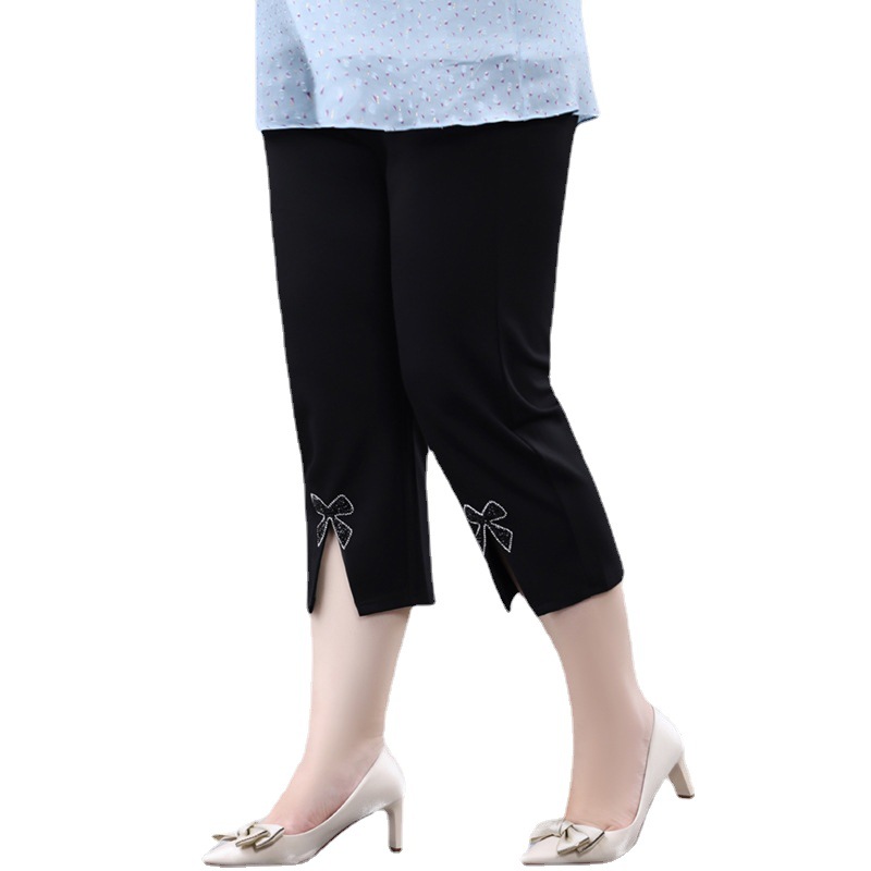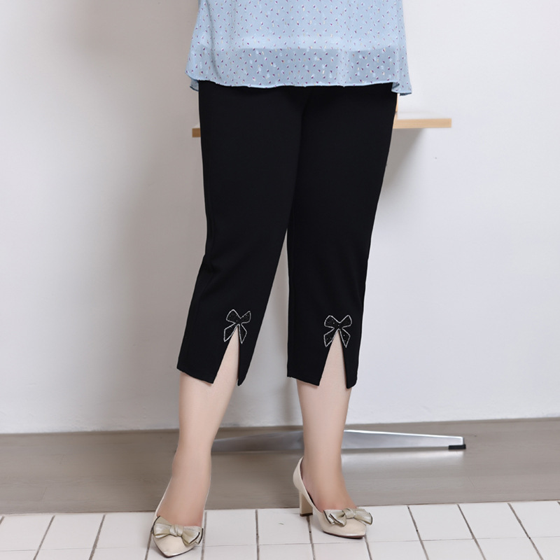 | nameOriginal | plus size women's 2024 summer new high waist stretch cropped pants fat 240kg legs thick split slim pants |