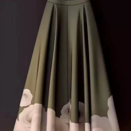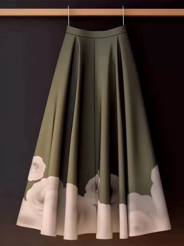 300 catties printed Chinese style fat mm hip A-line skirt