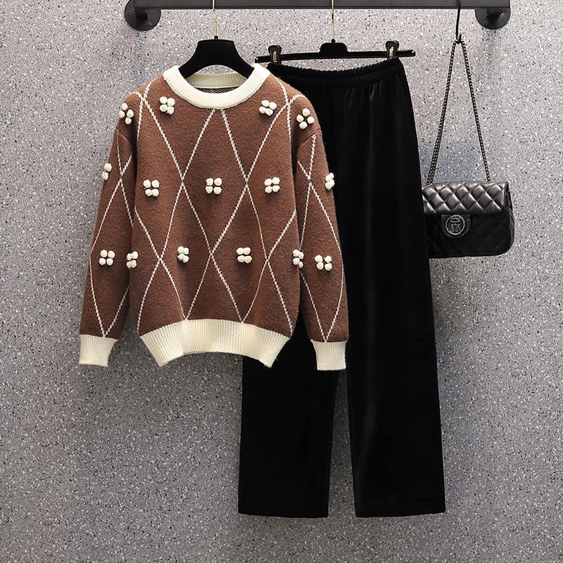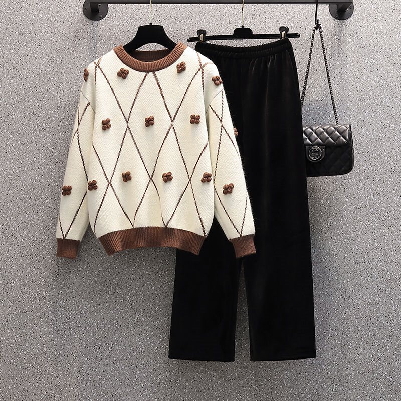 | nameOriginal | plus size women's autumn suit women's 2022 new age-reducing foreign-style three-dimensional flower sweater wide-leg pants two-piece fashion |