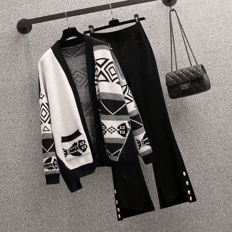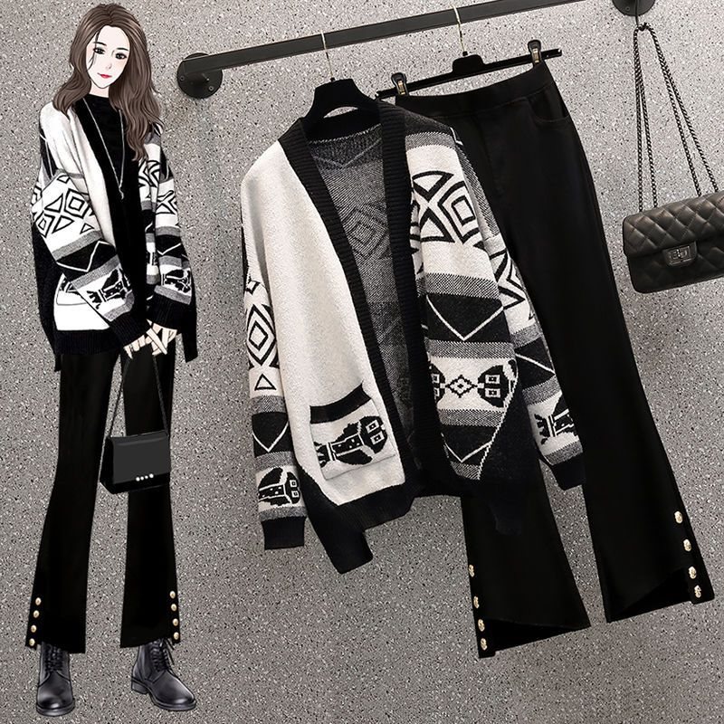 | nameOriginal | plus size Women's Autumn suit Women's 2022 New Flesh Covering Slim Loose Sweater Cardigan Jeans Two-Piece Trendy Set |