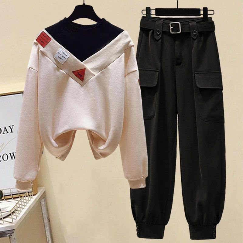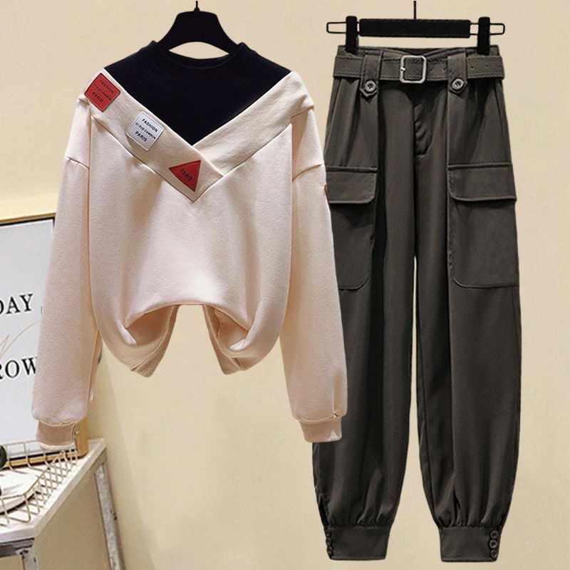 | nameOriginal | plus size women's autumn suit women's 2022 new waist slimming age-reducing fake two-piece sweater pants two-piece suit tide |