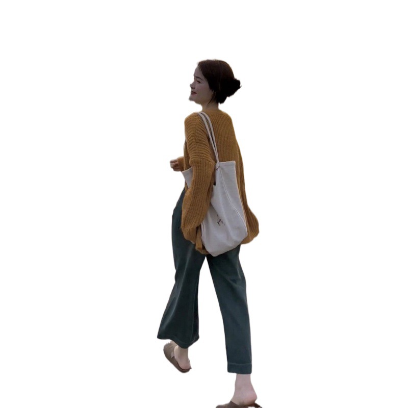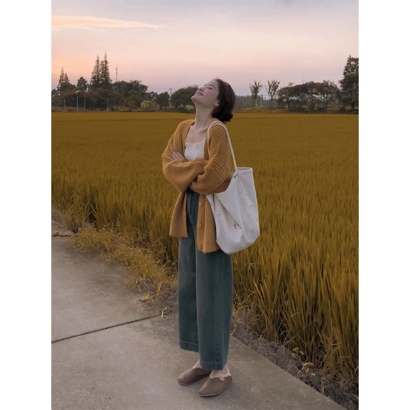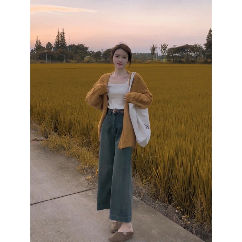 | nameOriginal | Plus size women's autumn suit women's 2024 new niche knitted cardigan sling wide leg jeans three-piece set |