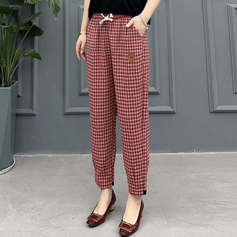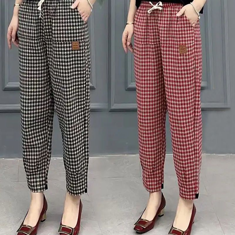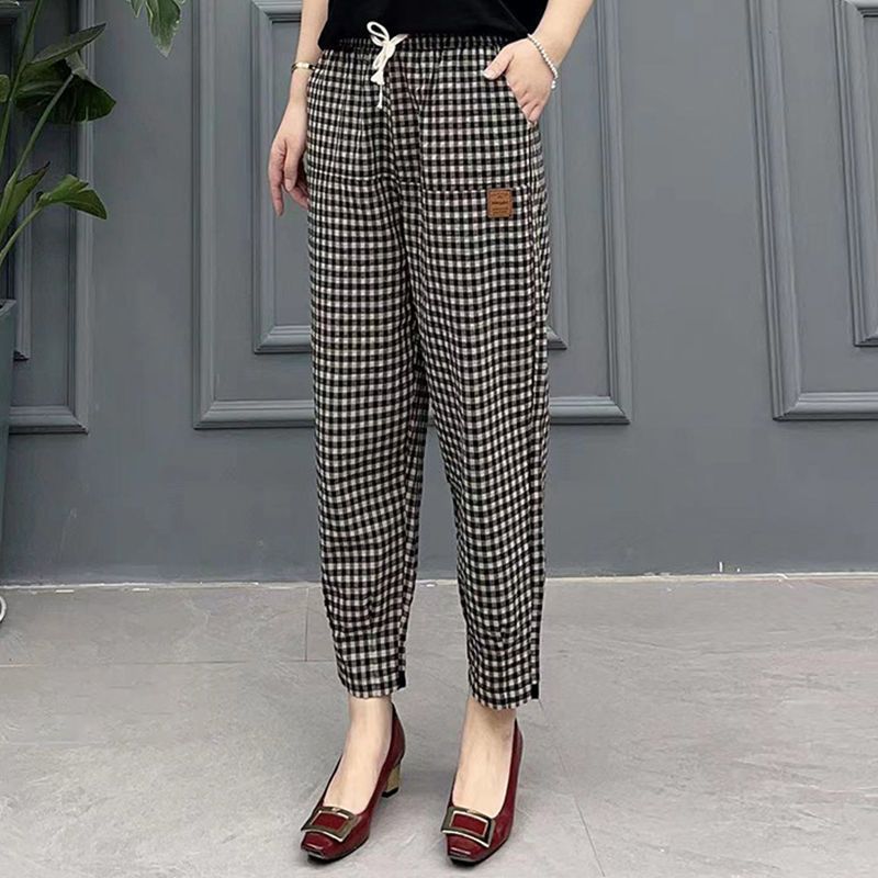 | nameOriginal | plus size Women's Casual Plaid Pants Women's Spring and Summer 2023 Loose Thin High Waist Slimming Fashionable Stylish Hallen Pants with Loose Waist |