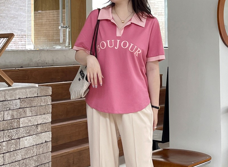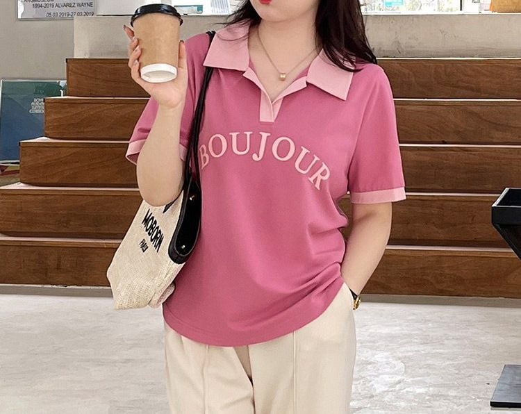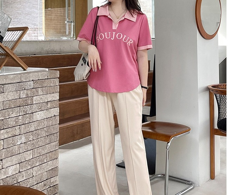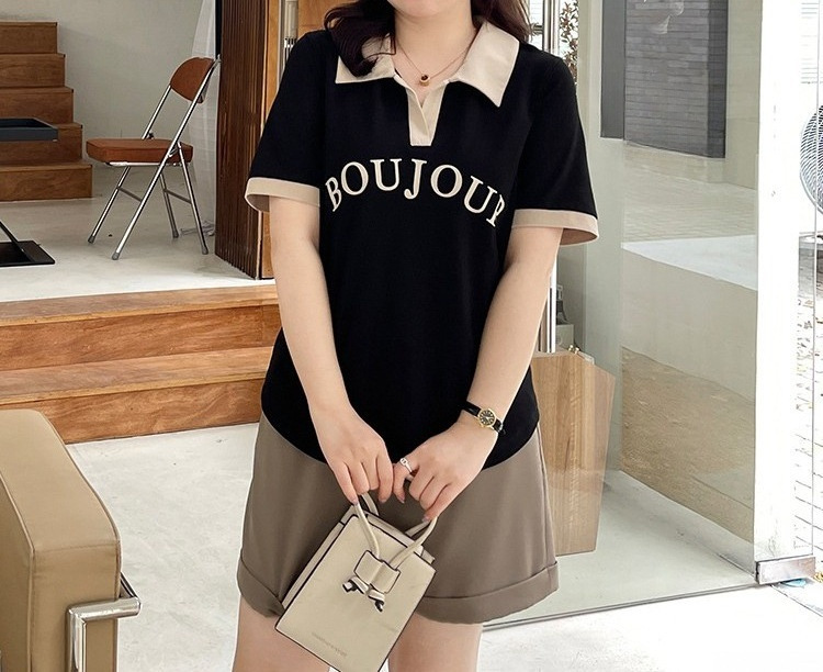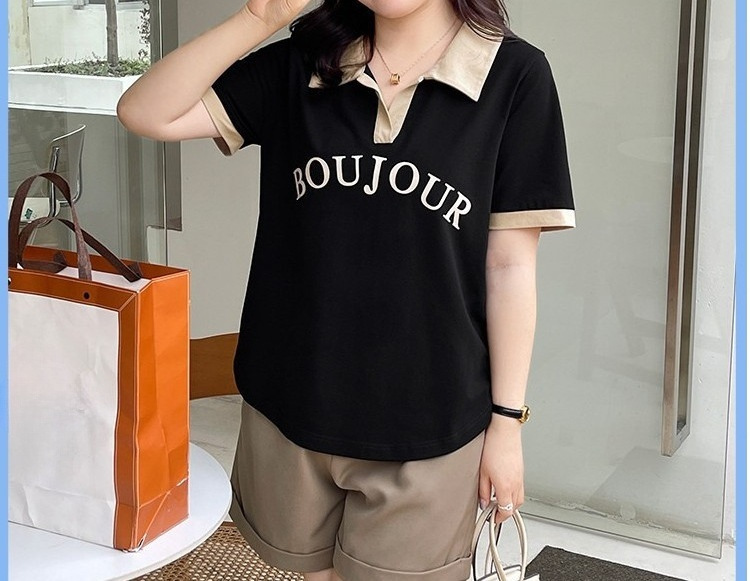plus size Women's chubby girl Chic Design Hidden Flesh Top Summer Belly-Covering Contrast Polo Shirt Short-Sleeved Shoulder T-Shirt
