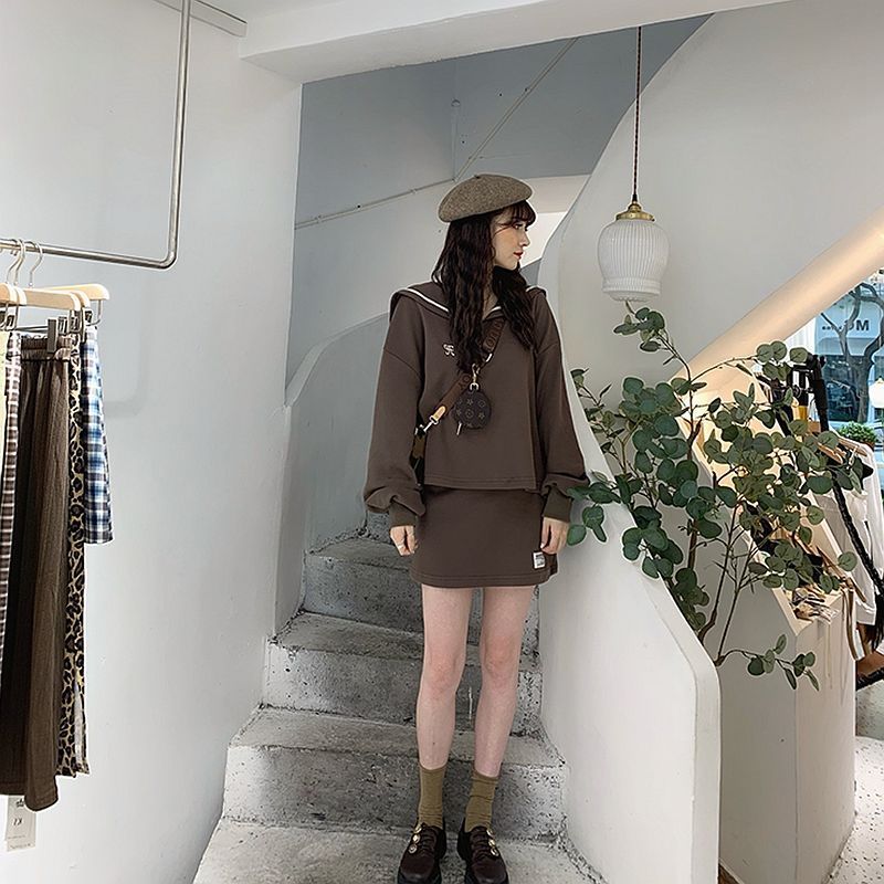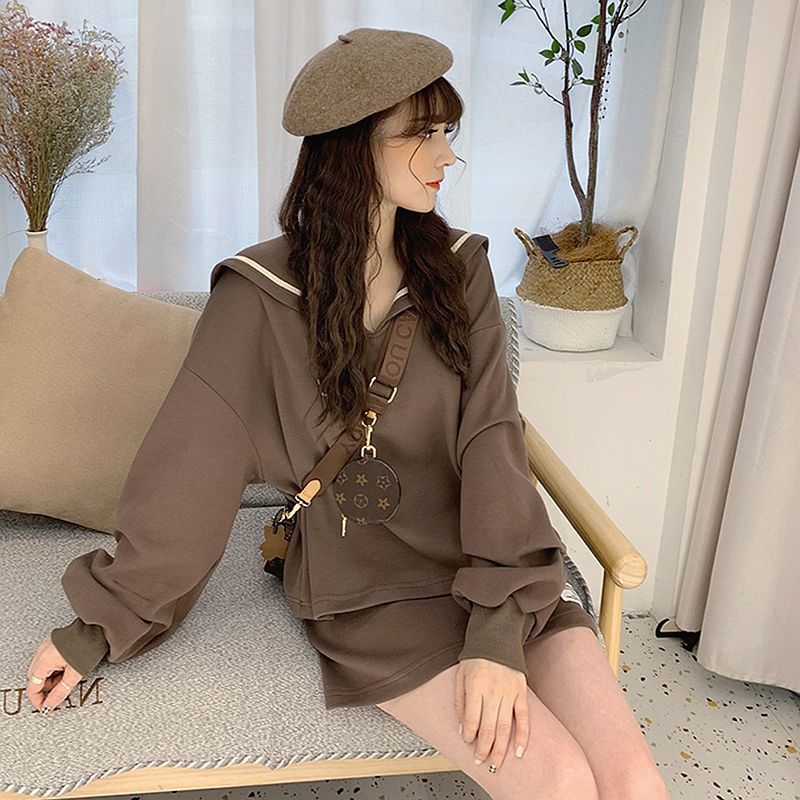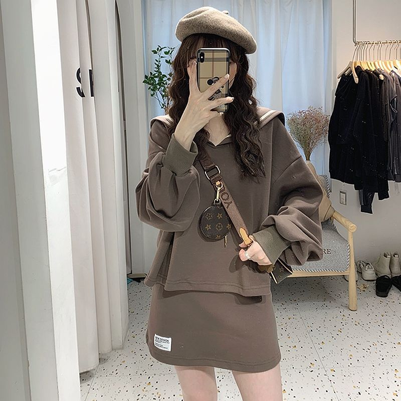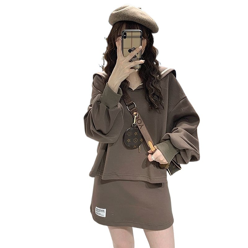 | nameOriginal | plus size Women's chubby girl Navy Collar Age-reducing Sweatshirt Skirt 2024 Spring and Autumn New Casual Korean Two-piece Set |