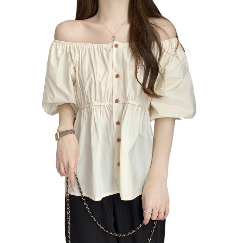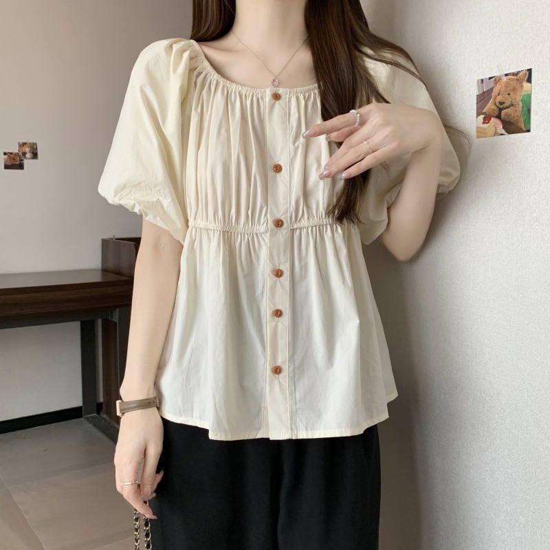 | nameOriginal | plus size Women's chubby girl Summer New 2024 apricot French Retro Shirt Loose Bubble Sleeve Belly Covering Top |