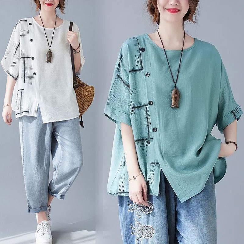 | nameOriginal | plus size Women's Clothes Loose Summer New Cotton Linen Slimming Mama's Fat Sister Short-sleeved T-shirt for Women |