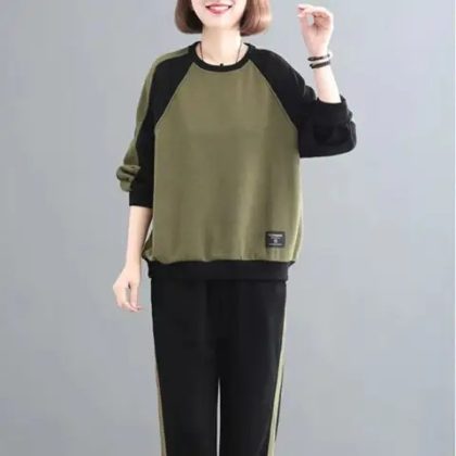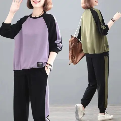 plus size women’s clothing 2024 autumn and winter long sleeve stitching sweater suit women’s clothing loose leisure sportswear two-piece fashion