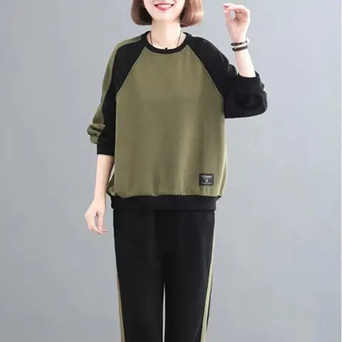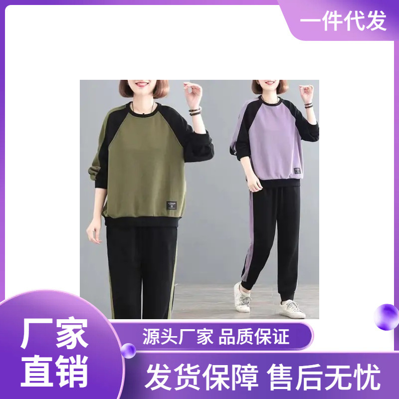 plus size women's clothing 2024 autumn and winter long sleeve stitching sweater suit women's clothing loose leisure sportswear two-piece fashion