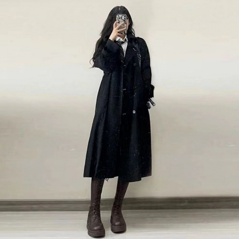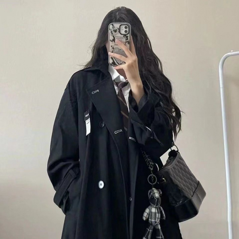 | nameOriginal | Plus size women's clothing chubby girl black windbreaker women's spring and autumn clothing mid-length college style overcoat coat |