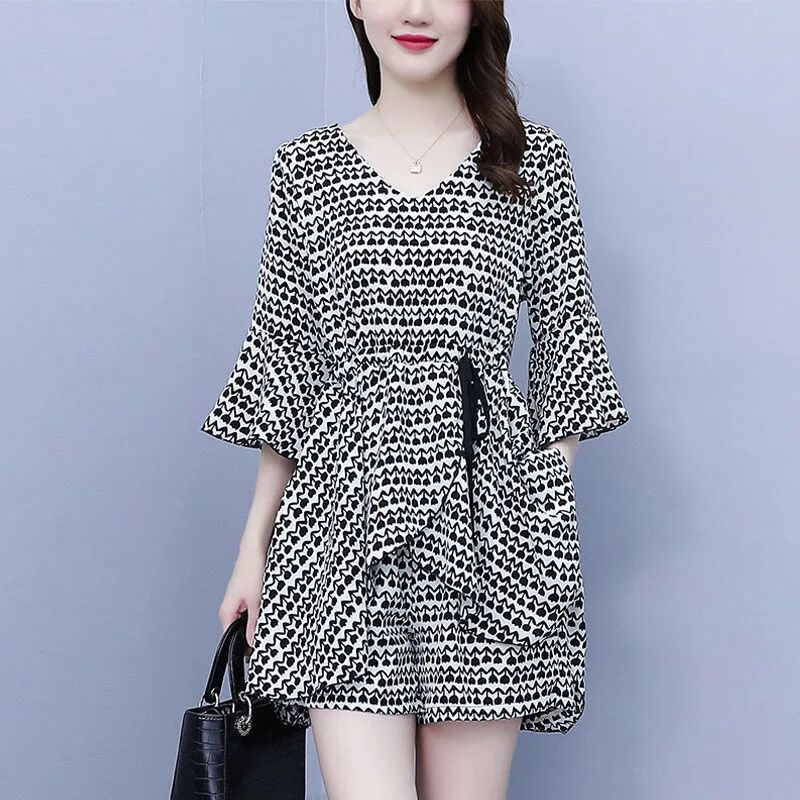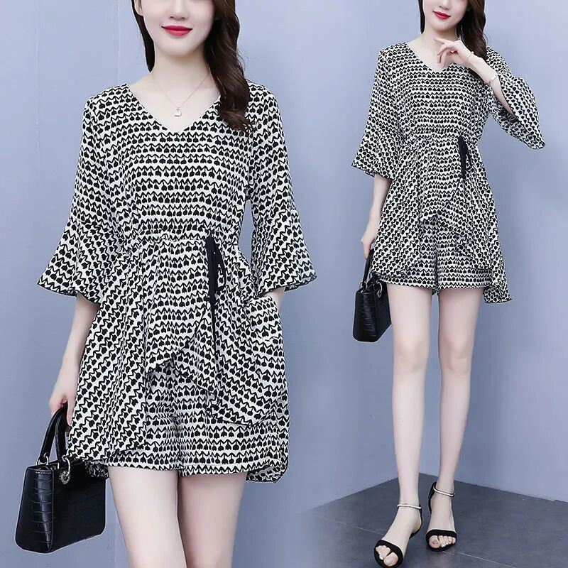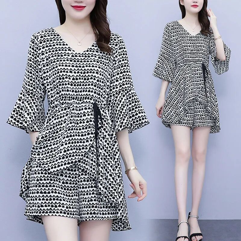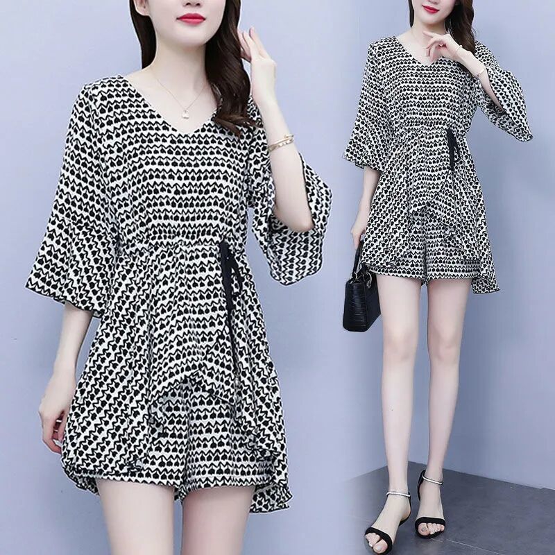 | nameOriginal | plus size Women's Clothing Chubby Niche Design Western-style Chiffon suit Summer Loose Belly Covering Shorts Two-piece Set for Women |