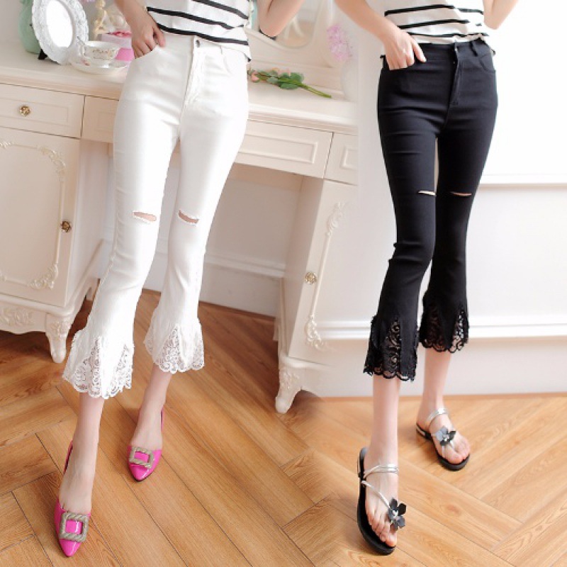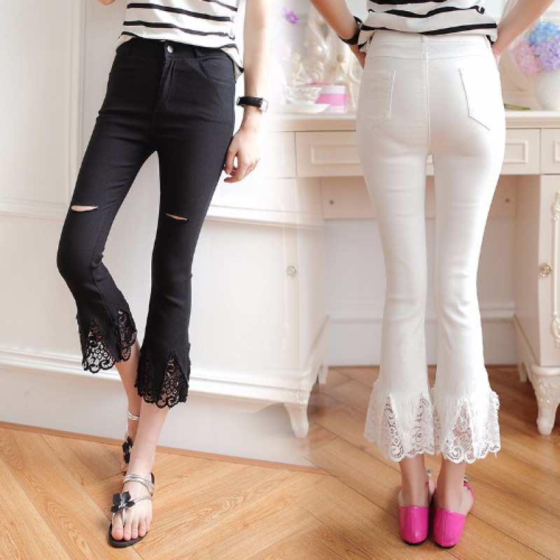| nameOriginal | plus size Women's Clothing Chubby Summer Korean Style High Waist Slim Fit Lace Flared Trousers Chubby Girl's Slim Fit Ripped Cropped Trendy Pants |