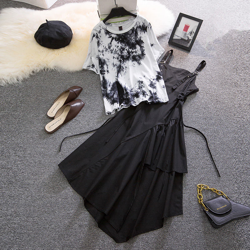 | nameOriginal | plus size Women's Clothing Design Niche Korean Style Summer Short-sleeved Women's Shirt Elegant Slimming Sling dress Two-piece Set |