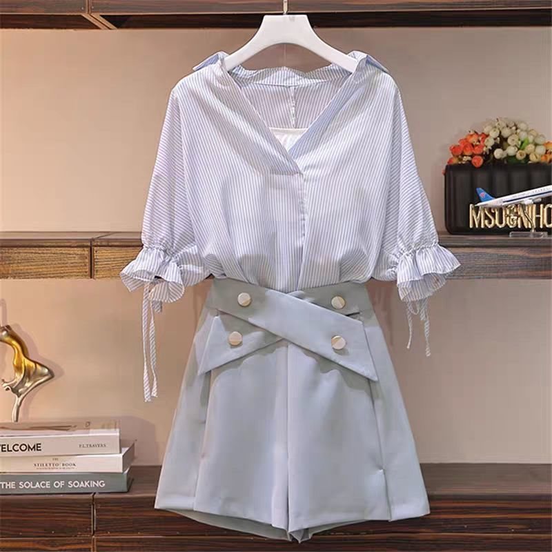 | nameOriginal | plus size women's clothing fat sister 2024 new winter trendy women wear foreign style shirt suit high waist shorts three-piece suit |