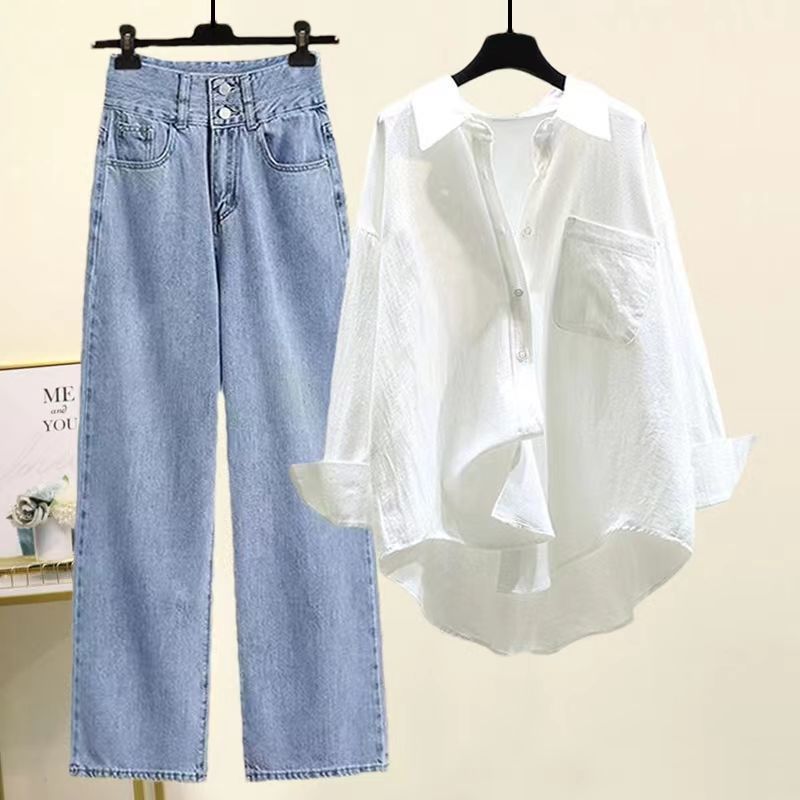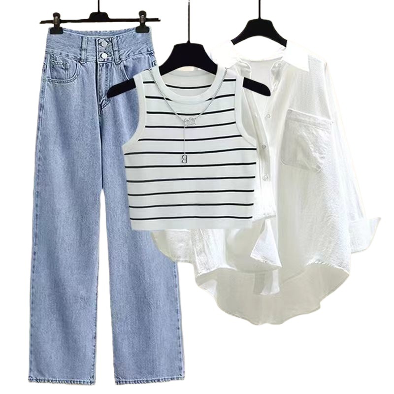 | nameOriginal | plus size Women's Clothing Summer suit Women's 2023 New Style Sunscreen Shirt Women's Camisole Vest Jeans Three-piece Set |